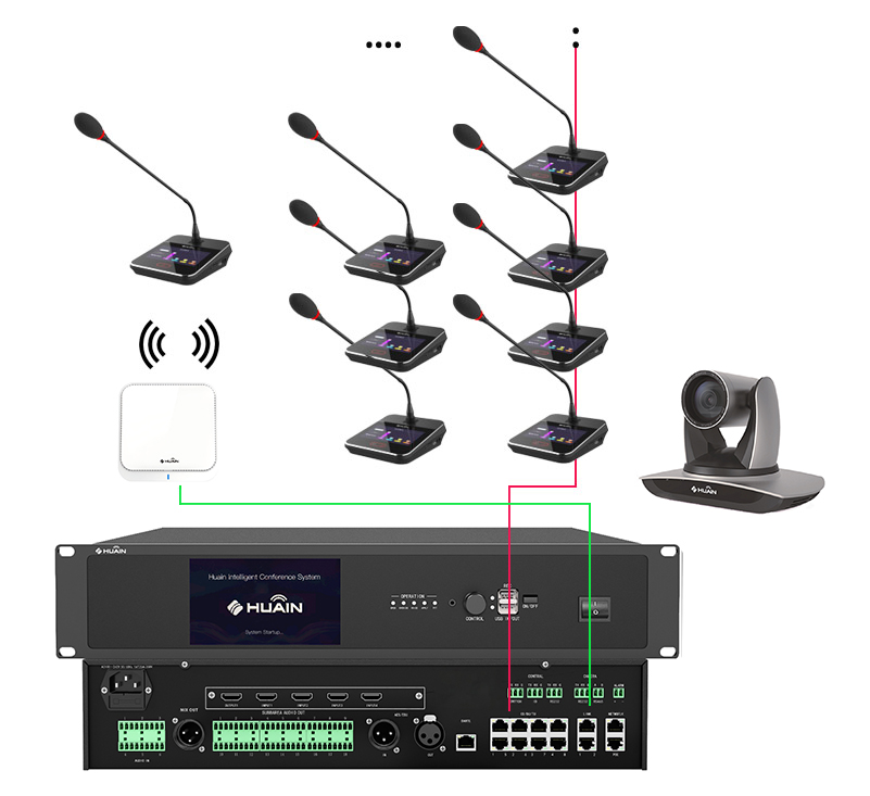 Founded in 2015, HUAIN is not merely a conference manufacturer; it is a national high-tech enterprise offering a full technology stack designed for the future of meeting management. This portfolio includes: 5G and 2.4G wireless microphones, all-digital wired discussion systems, dynamic paperless meeting platforms with electronic nameplates, sophisticated visual distributed management solutions, Dante/IP audio integration, central control, remote video capabilities, and professional sound reinforcement equipment. What truly differentiates the brand is the intrinsic way these components interlock. Instead of asking customers to integrate a collection of standalone devices from disparate vendors, HUAIN delivers complete, standardized meeting workflows. These workflows govern crucial procedural logic—who may speak and when, how robotic camera presets instantaneously respond to voice, where documents and votes are displayed, and, critically, how operators can monitor system health and security from a single, unified "pane of glass." Each conference unit is equipped with a high-definition touchscreen, supports up to 7 standard conference modes (e.g., FIFO, LIFO, Application to Speak, Queue to speak, Free Discussion, Chair mode, and Voice-activated Start ), allows flexible configuration of the number of active speakers (1-32), wired and wireless sharing, as well as web control and simultaneous interpretation functions, and supports 5 distinct menu languages (Chinese, English, French, Russian, Spanish), while integrating core procedural functions like real-time secure sign-in and confidential voting. That all-encompassing systems view is precisely why HUAIN is frequently shortlisted as a Preferred Professional Wireless Conference Microphone System Supplier for demanding public agencies, large utilities, leading universities, and global corporate headquarters.