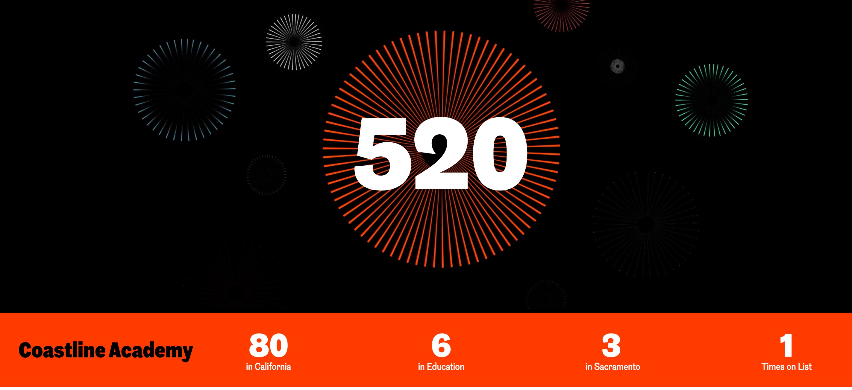 For the 2022 list, Coastline Academy was ranked sixth in the education industry, 80th in the state of California, and 520th overall. During the last three years, Coastline Academy has reported 1,192% revenue growth, which includes expanding into six states: Colorado, Illinois, Indiana, Missouri, Nevada and Texas.