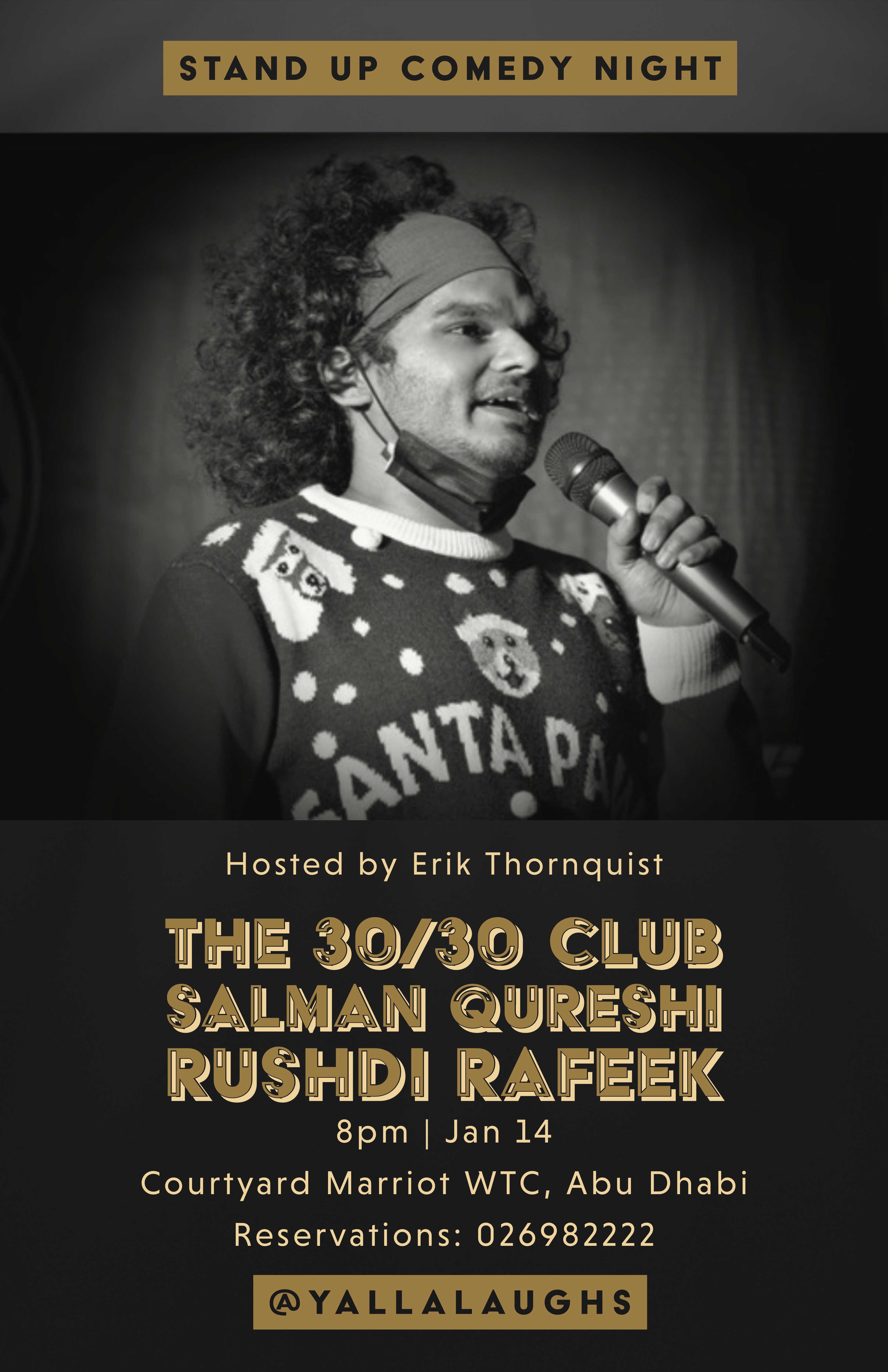 This Friday, January 14, 2022, the hilarious duo will appear at the Yalla Laugh’s Stand Up Comedy Night at the Courtyard Marriott WTC, Abu Dhabi where they will headline ”The 30/30 Club” hosted by Yalla Laugh founder and comedian Erik Thornquist.
