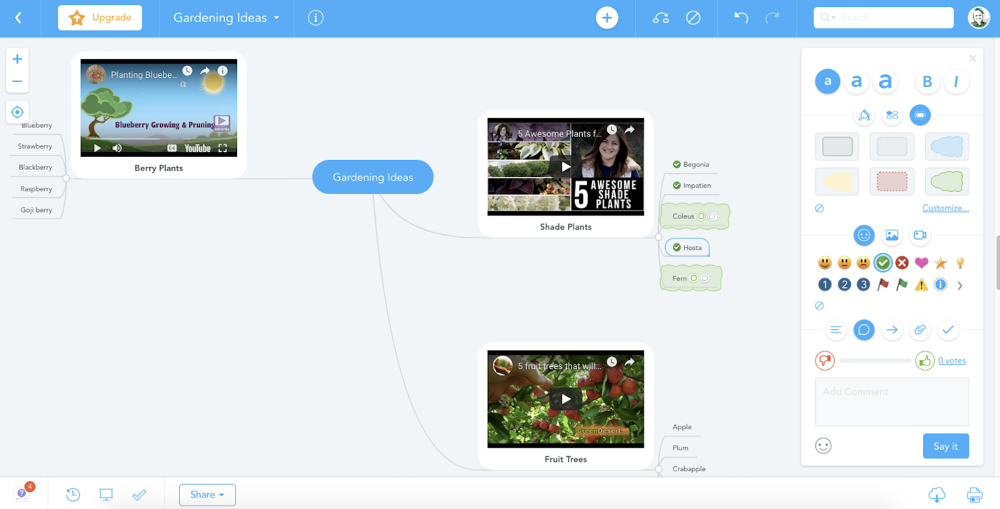 The most important thing that a mind map does is to help the user represent their ideas visually. Any good mind mapping app or software should give users the freedom and flexibility to easily create good-looking diagrams that effectively communicate the user’s ideas. The best mind mapping tools include some additional features that can quickly turn mind maps into useful, living tools.
