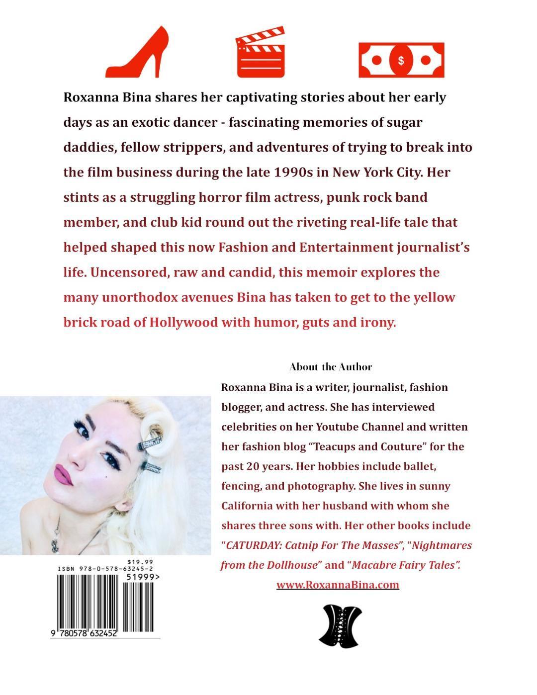 Los Angeles, California Feb 5, 2020 (Issuewire.com) - "CONFESSIONS OF A STRIPPING ACTRESS: A MEMOIR OF ADULT ENTERTAINMENT, SHOWBIZ AND MEN". This 206- page, PAPERBACK memoir features 6 pages of color photos and a glimpse into my life during the late 90s and early 2000s. Roxanna Bina shares her captivating stories about her early days as an exotic dancer - fascinating memories of sugar daddies, fellow strippers, and adventures of trying to break into the film business during the late 1990s in New York City. Her stints as a struggling horror film actress, punk rock band member, and club kid round out the riveting real-life tale that helped shaped this now Fashion and Entertainment journalist’s life. Uncensored, raw and candid, this memoir explores the many unorthodox avenues Bina has taken to get to the yellow brick road of Hollywood with humor, guts and irony.