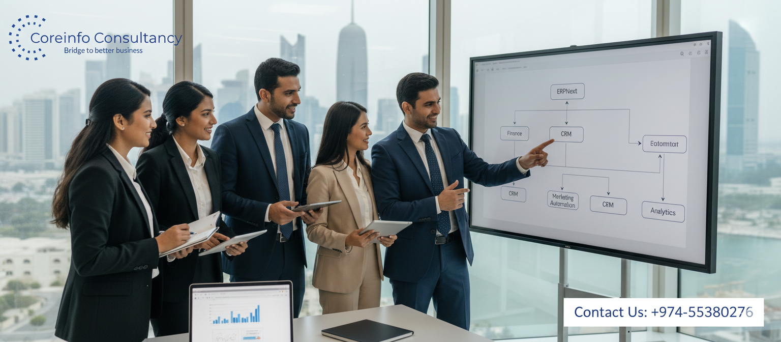 Coreinfo Consultancy, a leading management firm based in Doha, is proud to announce the expansion of its specialized service suite, focusing on ERP Next Implementation and Digital Marketing Services. Designed to empower small to large-scale enterprises, these services aim to bridge the gap between traditional business processes and modern digital efficiency.