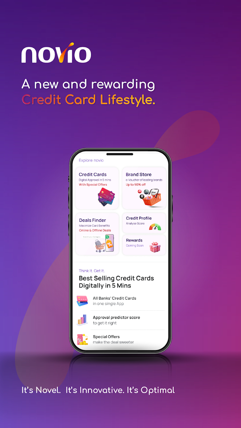 Cards Online Marketplace at: With over 100 credit cards from premier banks like Axis, HDFC, IDFC, HSBC, Yes Bank, IndusInd, SBI, Citi, ICICI, Kotak, Bank of Baroda, RBL, SCB, and AU Small Finance and more, novio ensures users find their perfect match. novio leverages open API integrations with leading banks to provide a seamless digital application journey.