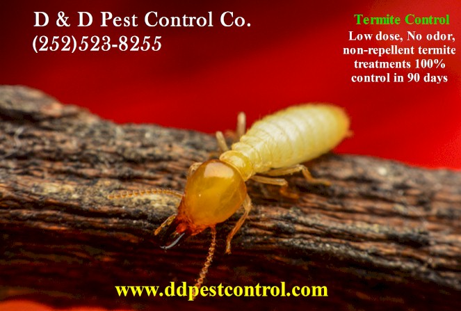 D & D Pest Control Co. is offering Termidor termite treatments to homeowners in Eastern North Carolina, including Jacksonville, New Bern, Kinston, Goldsboro, Snow Hill, and Greenville. To learn more about Termidor termite treatments or to schedule a free inspection, please call D & D Pest Control Co. at (252) 523-8255 or visit their website at www.ddpestcontrol.com.
