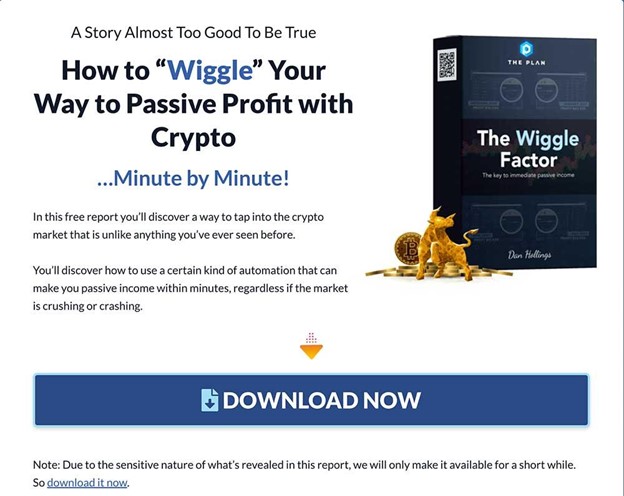 Specifically, Dan will discuss “The Plan,” which is an automated income-generating strategy he created. The Plan involves using “The Wiggle Factor” to perfectly time the market’s rapid movements, generating quick and easy crypto profits without requiring any work. In fact, Dan claims his system works automatically to generate substantial trading revenue. He also claims it’s a “conservative” approach, generating passive income with limited risk.