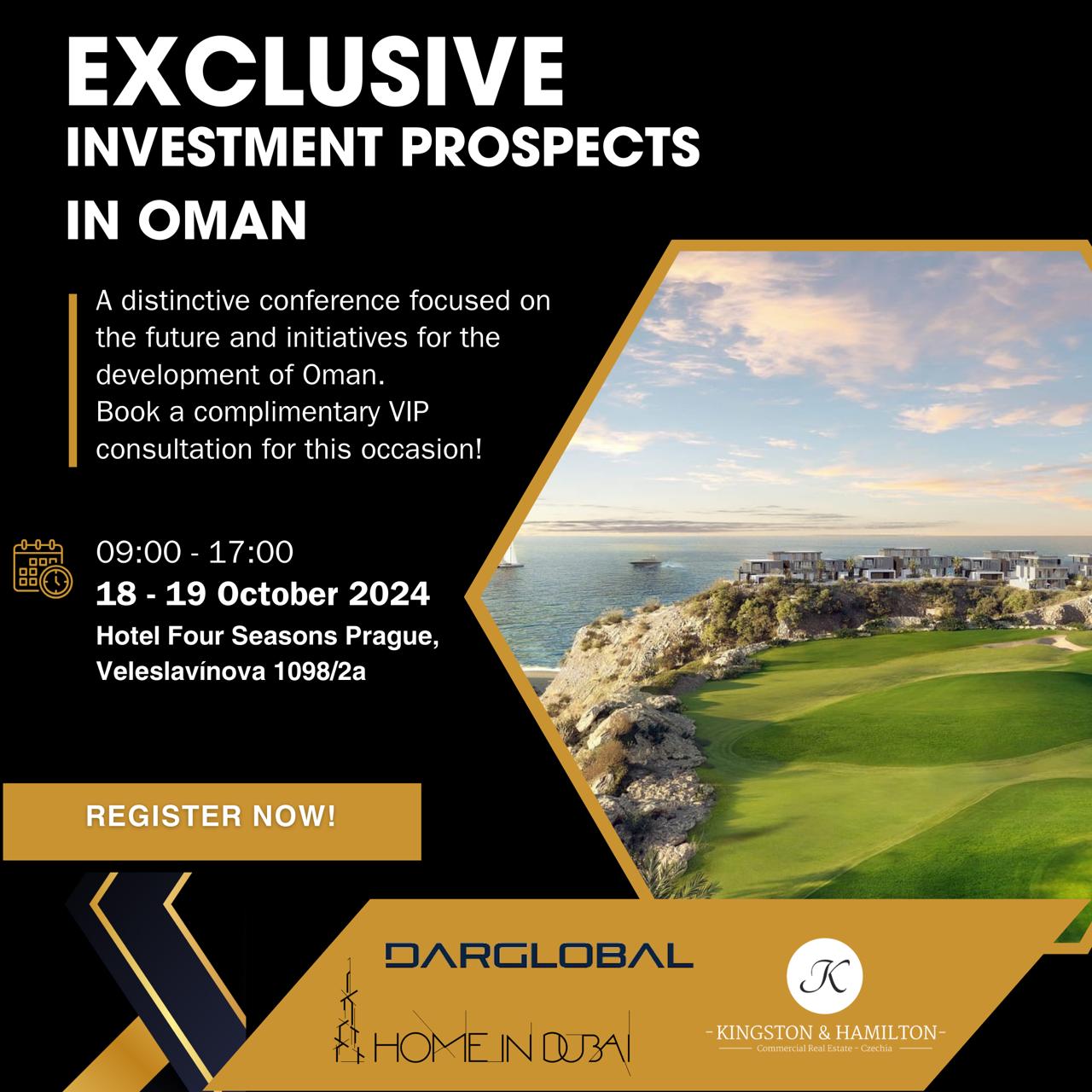 Prague, Praha Nov 21, 2024 (Issuewire.com) - The Four Seasons Hotel in Prague will host the DarGlobal Roadtour: Exclusive Investment Opportunities in Oman on October 18-19, 2024. Organized by DarGlobal, a leading property developer in Oman and the Middle East, in collaboration with Home in Dubai RE, s.r.o. and Kingston & Hamilton s.r.o., this event offers European investors an exclusive opportunity to explore Oman's burgeoning real estate market.