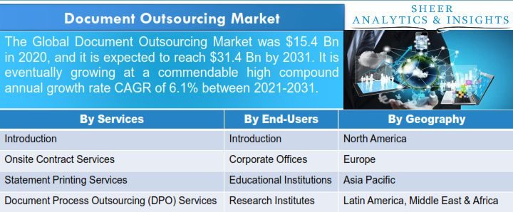 San Jose, California Jan 12, 2021 (Issuewire.com) - The Global Data Analytics Outsourcing Market was $4.3 Bn in 2020, and it is expected to reach $36.3 Bn by 2031. It is eventually growing at a commendable high compound annual growth rate CAGR of 20.6% between 2021-2031 as per the latest market research report titled Global Data Analytics Outsourcing Market (By Type – Descriptive, Predictive, and Prescriptive. By Application – Sales Analytics, Marketing Analytics, Finance & Risk Analytics, Supply Chain Analytics, Others. By End-Use – BFSI, Telecom, Retail, Healthcare, Media & Entertainment, Manufacturing, Others. By Geography – North America, Latin America, Europe, Asia Pacific, Middle East, and Africa.) - Industry analysis, size, share, growth, trends, and forecast, 2021 – 2031.