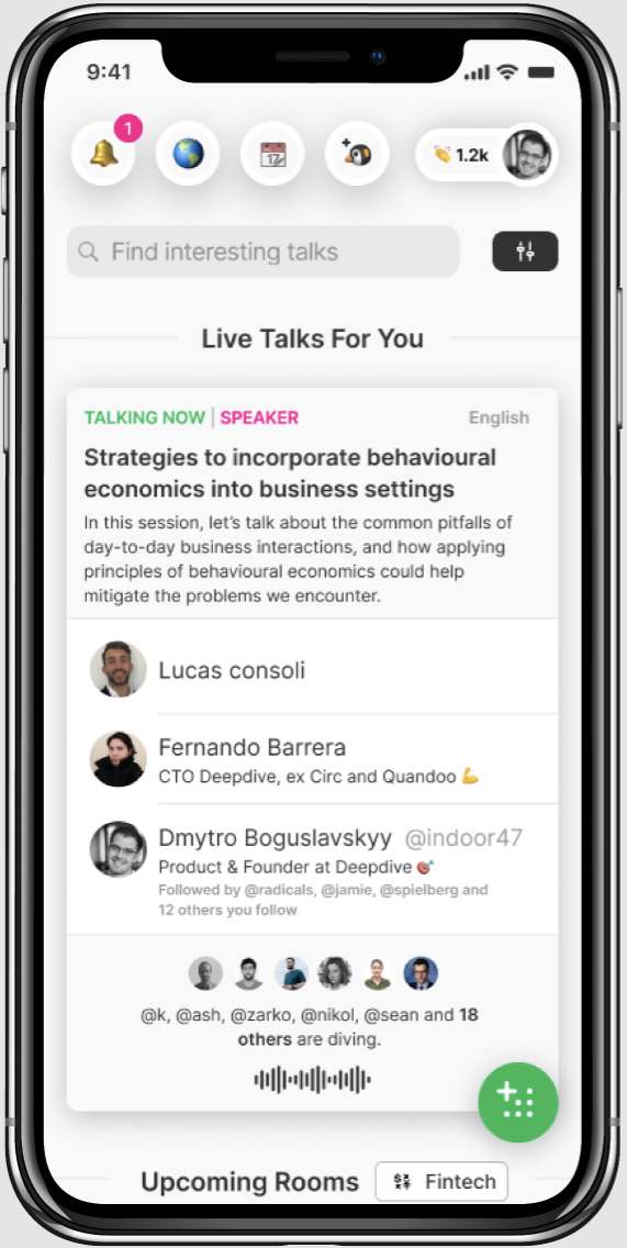 - “Our mission is to help people grow through discourse, personally and professionally, creating value for each minute spent within the app.”, says Dmytro, the Founder of Deepdive