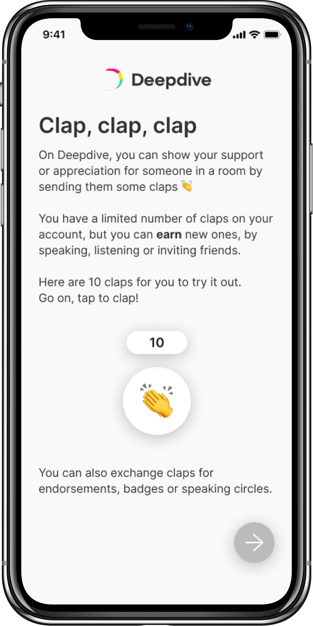 Unlike other audio apps, where interaction is limited to raising a virtual hand and getting on stage to speak, Deepdive aims to provide an immersive experience within rooms through emotional cues such as laughing, clapping or coughing to fill the awkward silences, with plans to integrate audio-bots, like Alexa or Siri as the next step.