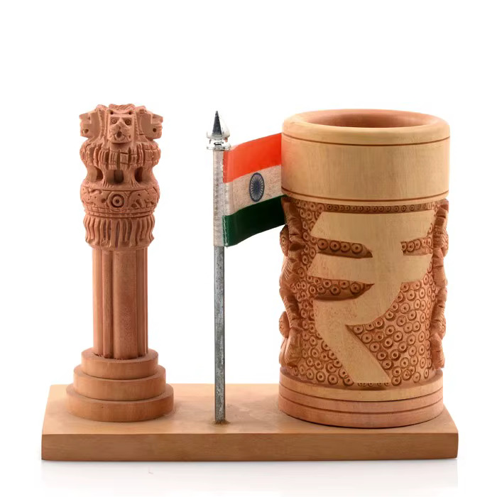 Pen Stands: Elegant pen stands featuring the Ashok Stambh and Indian flag designs are perfect for desks, combining functionality with national pride.