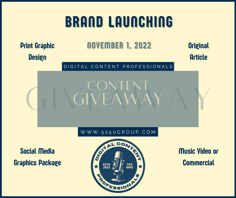 Ocean Shores, Washington Nov 1, 2022 (Issuewire.com) - The 52/50 Group is pleased to announce the launch of our new brand ‘Digital Content Professionals’. We are a Premier Marketing Agency and content creation company that offers creative and innovative solutions to our clients, specializing in content creation of mass variety. We can help you create an undeniable online presence with superior services in digital graphics, video production, original articles, social media ads, and much more. Our in-house marketing team implements customized solutions that meet your business needs. In addition, we offer an array of print designs such as brochures, posters, flyers, business cards, company merchandise, and more.