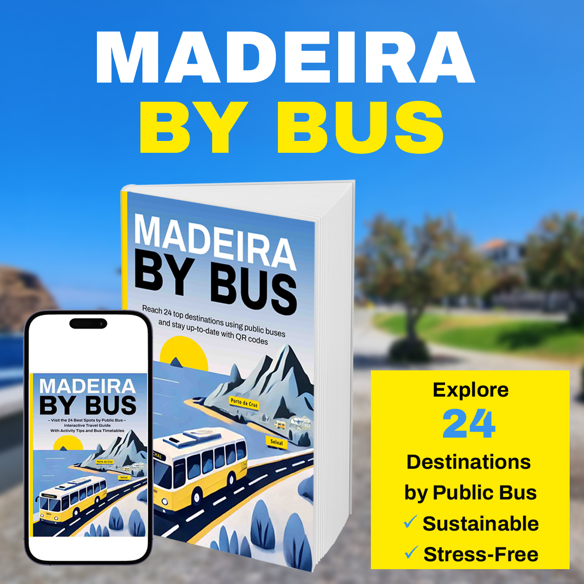 This groundbreaking guide integrates detailed bus schedules with 24 must-visit destinations across Madeira. Whether you want to wander through the historic streets of São Vicente and Santana or relax by the iconic lava pools in Porto Moniz, “Madeira by Bus” offers straightforward routes using public transport.
