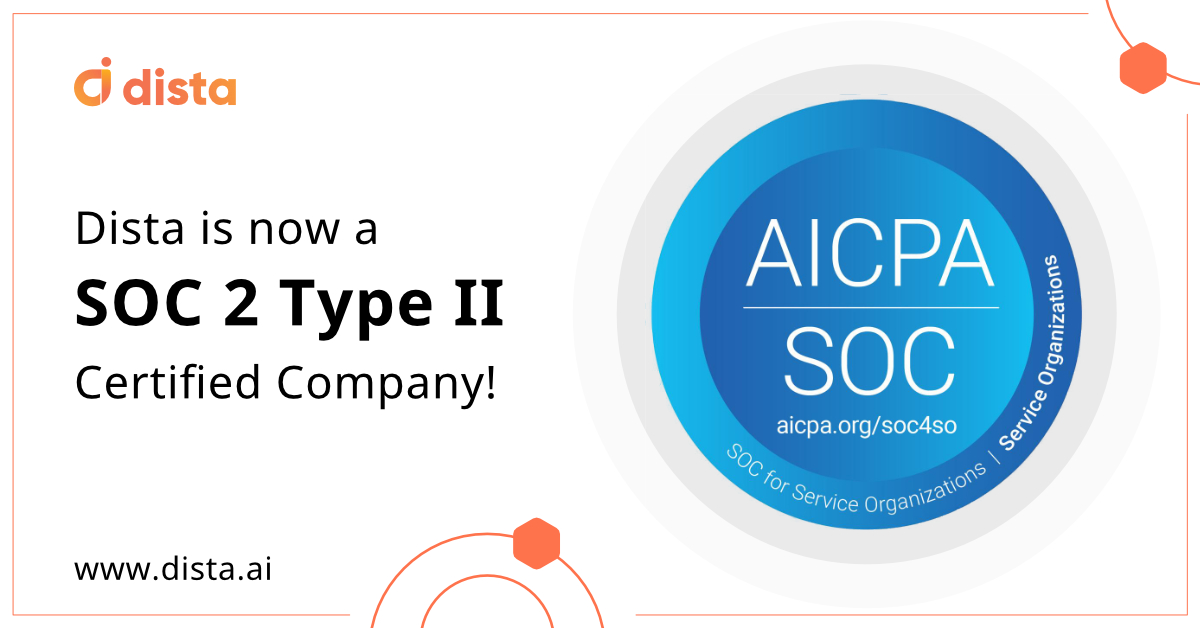 "Dista is committed to keeping the customer data and other sensitive information secure,” said Rajesh Patil, VP of Customer Experience & Head of IT and Infosec Compliance Officer, Dista. “We are proud of the fact that our products and processes have been successfully certified for the rigorous SOC 2 Type II standards”.