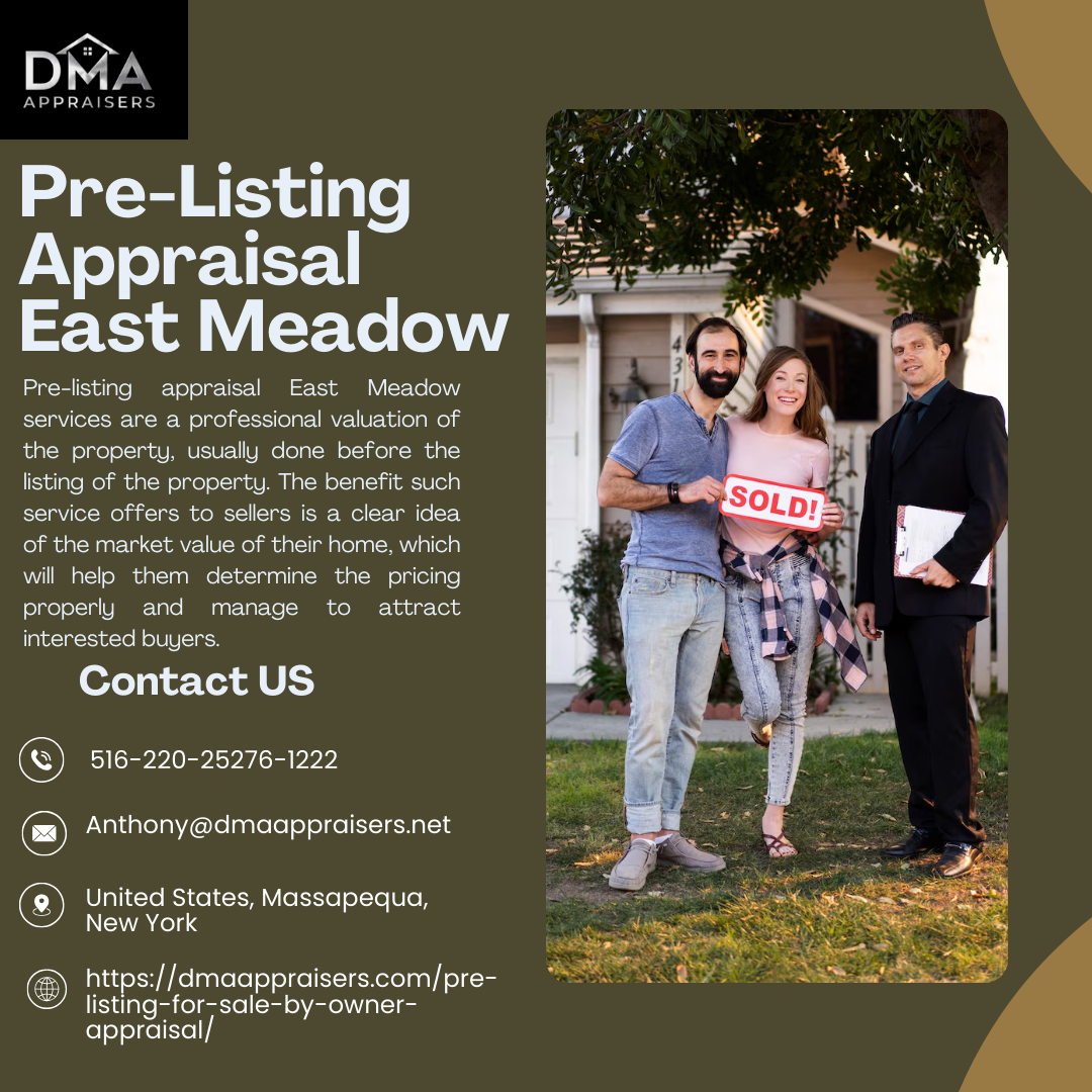 Massapequa Park, New York Jan 9, 2025 (Issuewire.com) - It's no secret that the fight for the right buyer has upped the ante in today's ever-harder real estate marketplace. Whether you are a homeowner getting ready to sell your property or are looking for ways to maximize your client's listing potential, DMA Appraisal will stand out as the trusted partner for comprehensive pre-listing appraisal Merrick or pre-listing appraisal East Meadow services by which reputations are built, excellence is professional and precision is expected.
