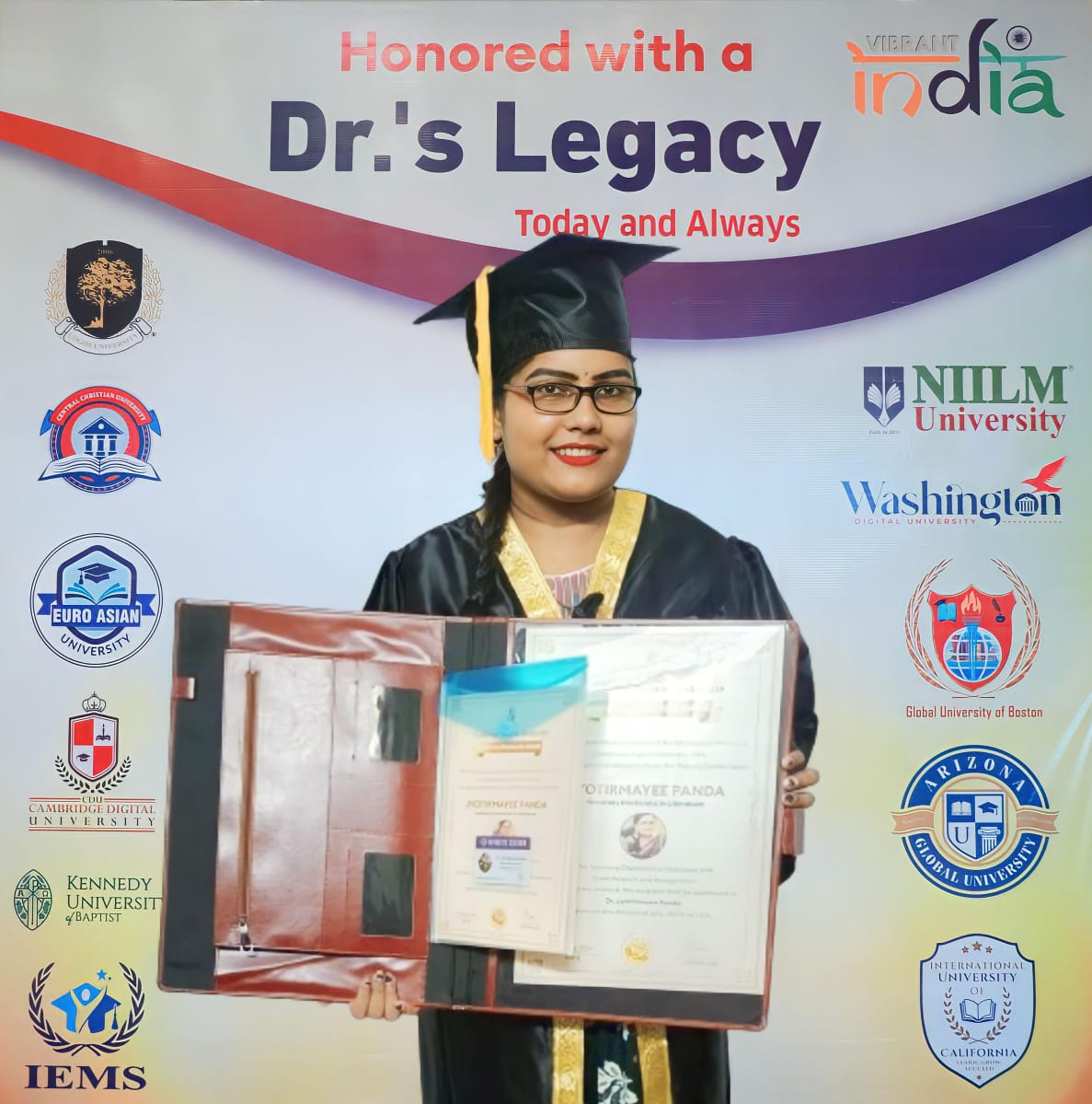 Dr. Jyotirmayee Panda’s evolving legacy is driven by her belief in creativity and her commitment to empowering others. She exemplifies how talent, resilience, and purpose can spark transformation, leaving a lasting impact on literary and entrepreneurial landscapes. With her vision for an inclusive and creative world, she continues to nurture the next generation of writers and leaders.