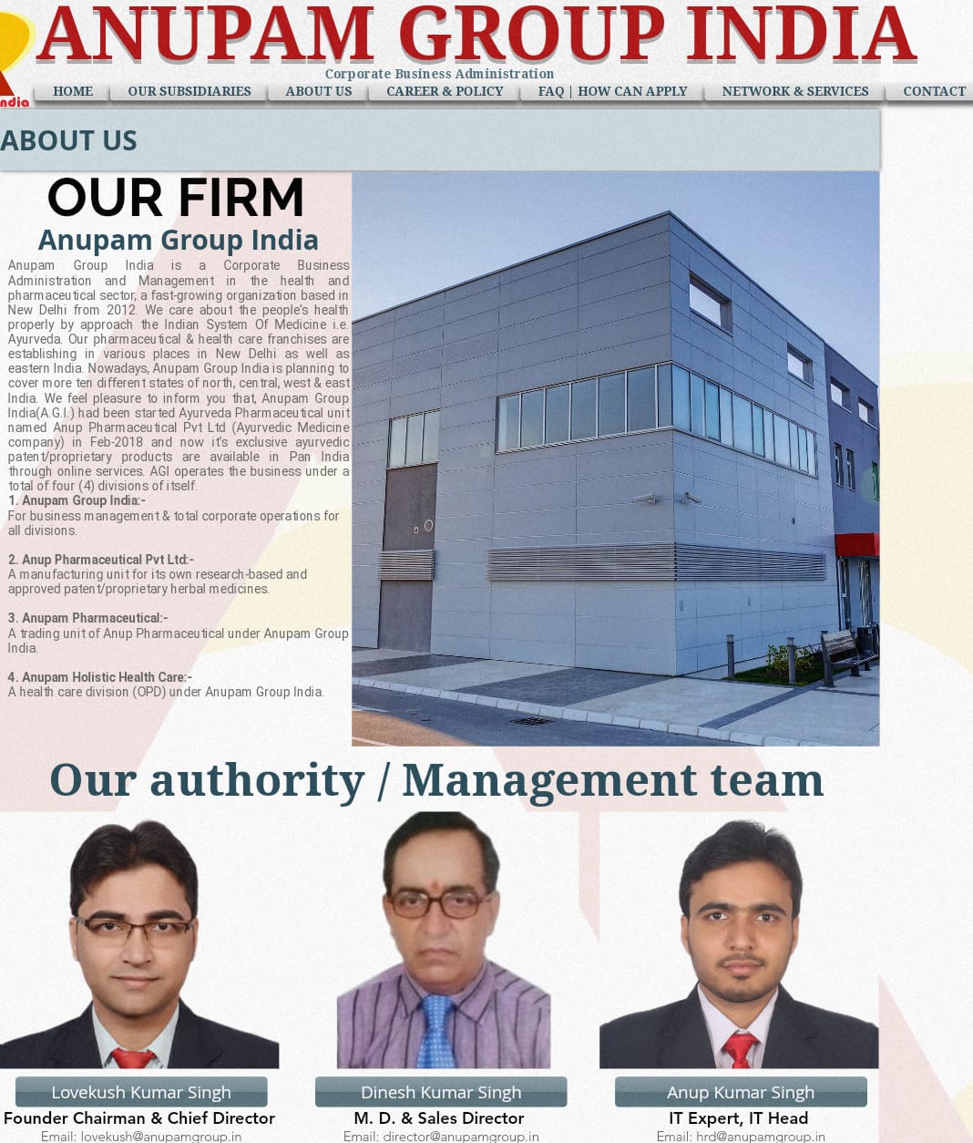 New Delhi, Delhi May 26, 2022 (Issuewire.com) - Anupam Group India is a Corporate Business Administration and Management in the health and pharmaceutical sector, a fast-growing organization based in New Delhi. In the year 2019 itself, the second and third subsidiaries were created to operate under Anupam Group India, whose names are Anupam Pharmaceuticals and Anup Pharmaceuticals respectively. Anup Pharmaceuticals is responsible for the production of Ayurvedic medicines while Anupam Pharmaceuticals is responsible for selling the manufactured medicines in wholesale and retail markets and eCommerce platforms. Anup Pharmaceutical minds your health and a healthy lifestyle because your health is their first priority. They are constantly trying to be the best for you. They ensure consistency in herbal ingredients and uniformity of all products and every product is developed and formed under the observation of our Ayurveda experts and is approved by the Directorate of AYUSH (Ministry of AYUSH).