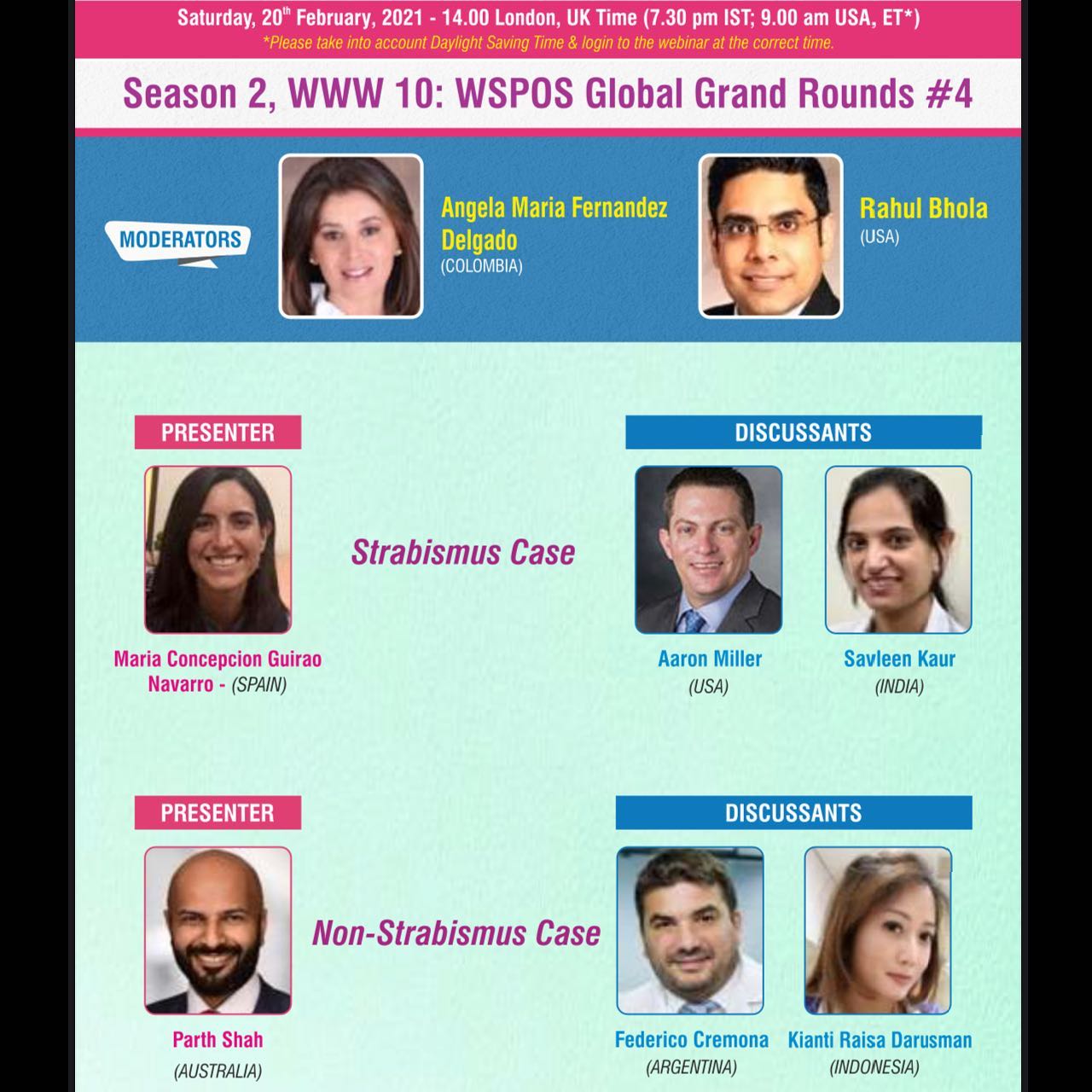 The next day, Dr Shah will return for a case presentation as part of Global Grand Rounds #4 on Saturday, February 20, 2021. The session will start at 2 PM GMT. Dr Parth Shah will be presenting an interesting case of congenital corneal opacity and glaucoma. He is joined on the panel by expert ophthalmologists from around the globe. Dr Shah is also excited about Dr Guirao Navarro’s presentation on sudden onset esotropia in an infant.
