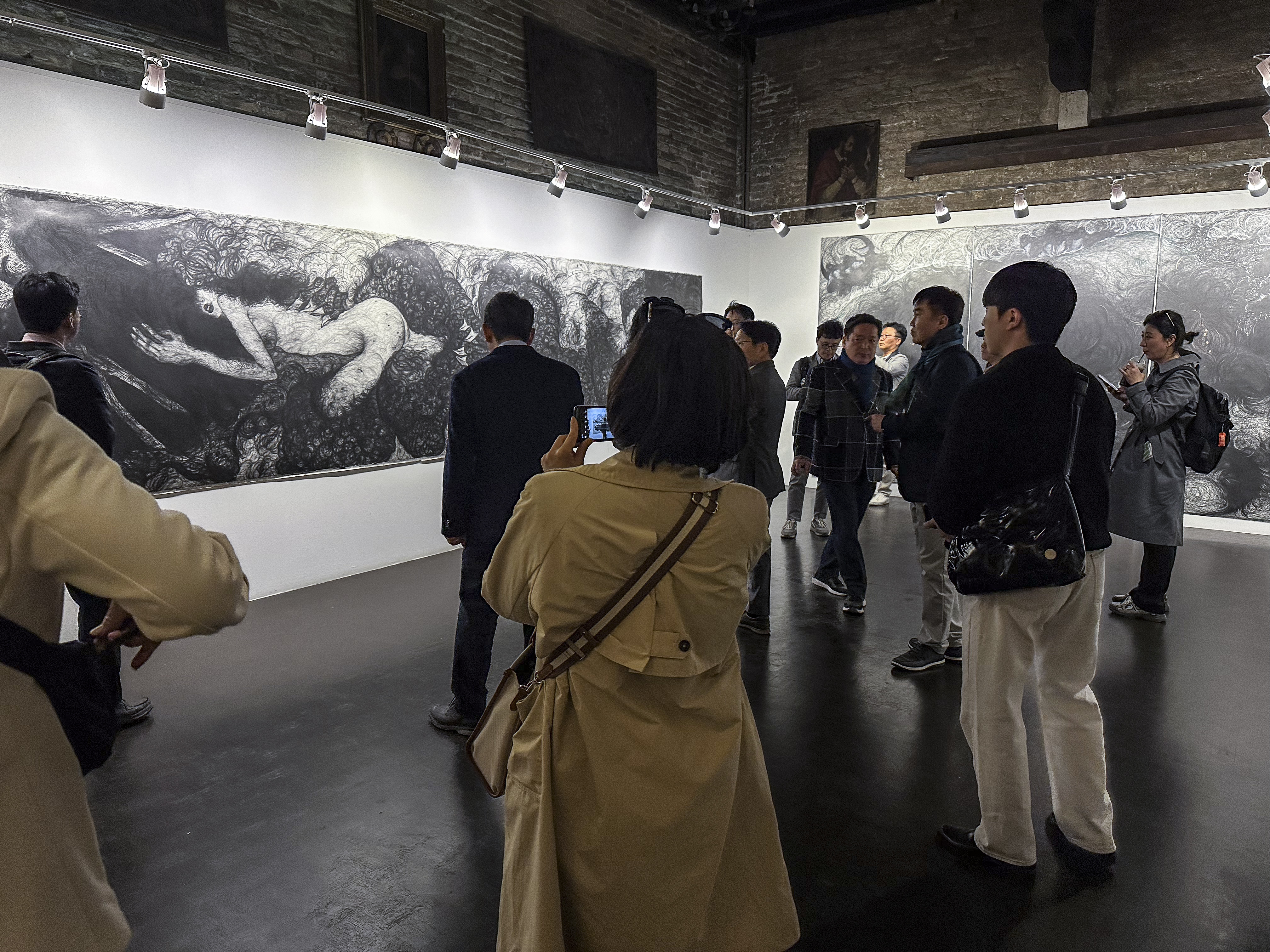 The strength of her art lies in the distinctive nature of her practice. Using a tiny pencil, Park obsessively draws on monumental canvases up to 10 meters long. This process resembles a hypnotic dance, where her fluid movements across expansive surfaces evoke a Taoist ritual, breathing life into the dragon and establishing a profound connection between the artist and the enchanting female figures depicted in her work.