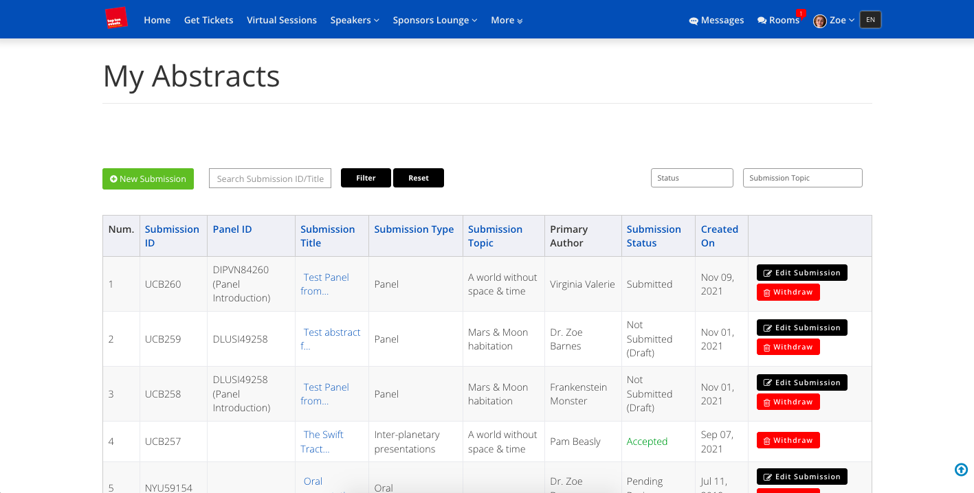 The abstract management system allows authors to submit abstracts and for reviewers to review them.