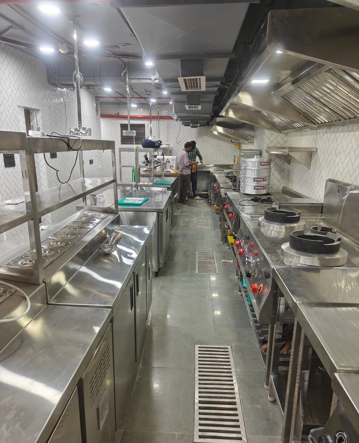 As a reliable commercial kitchen equipment supplier in Delhi, we offer complete end-to-end solutions. We start with a visit and consultation, taking into account your menu, type of service, and requirements. Based on this, our expert commercial kitchen design consultants in Delhi design effective kitchen layouts, workflows, and utility systems that meet safety requirements. From equipment selection to stainless steel fabrication, installation, and integration, our knowledgeable team manages it all. Cooking, refrigeration, ventilation, and utility services are organized to create a complete kitchen. Testing is Rigorous to make sure that you can start right away.