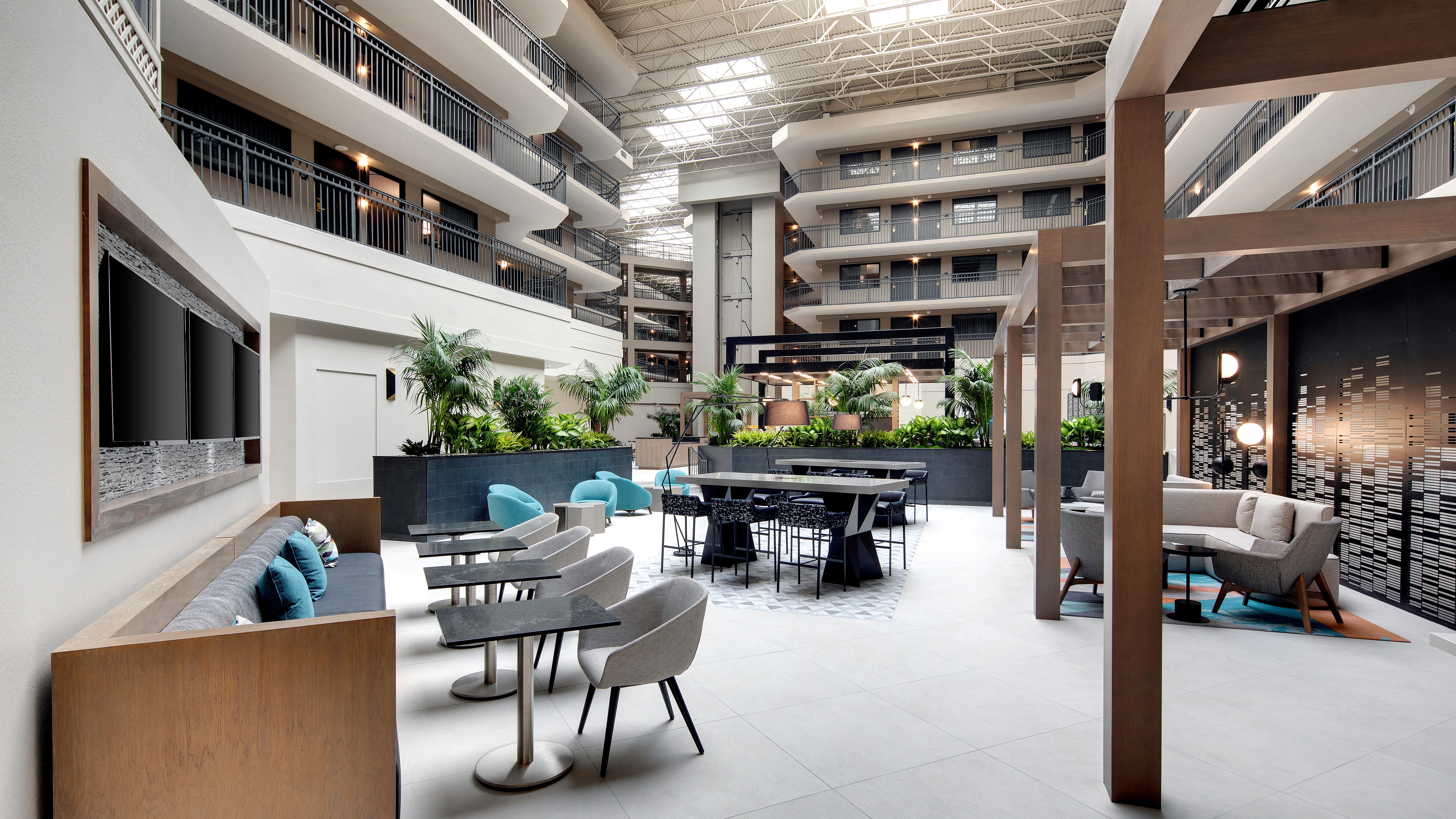 Managed by Hospitality Ventures Management Group; phase one for Embassy Suites by Hilton San Rafael Marin County’s renovation, which began in July 2019, included a complete redesign and upgrade of all 236 guest suites. The property modernization also features a fitness center with separate strength training and cardio areas, including Peloton bikes, indoor heated pool, outdoor patio dining and relaxation areas, E’Terie Market, guest laundry, connectivity center, and over 19,000 square feet of flexible meeting space.