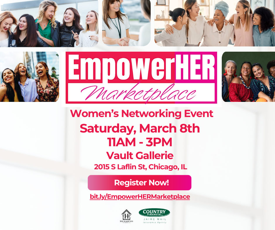 The EmpowerHER Marketplace, organized by Brandi Hampton, owner of The Hampton Collective & Jaime Wail, Insurance Agency Owner of Country Financial, is a Chicago-based initiative dedicated to supporting and uplifting women entrepreneurs through events, resources, and community-building efforts.