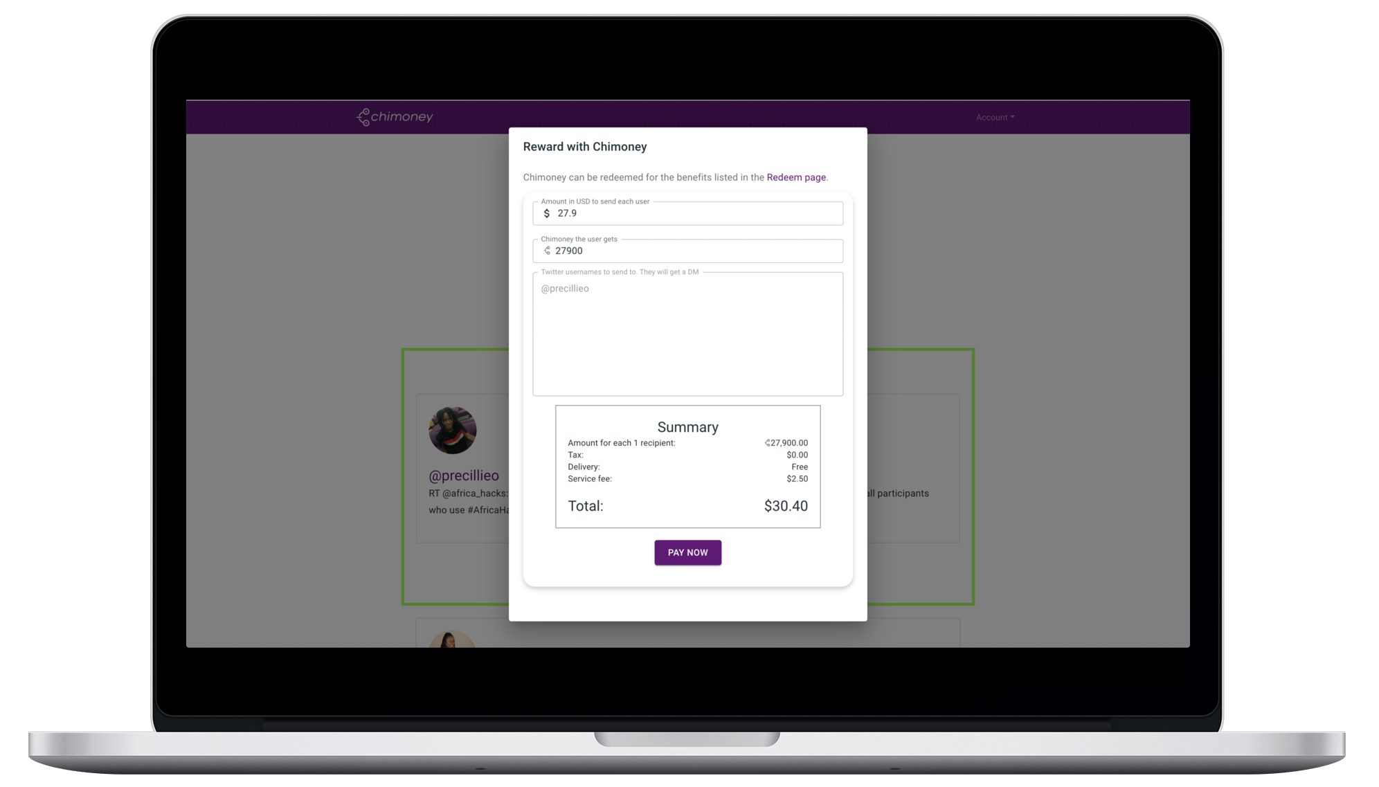 Chimoney increases engagement and excitement by making it super easy for event organizers and employers to reward their team and participants with a flexible token that can be redeemed for anything in more than fifteen countries.