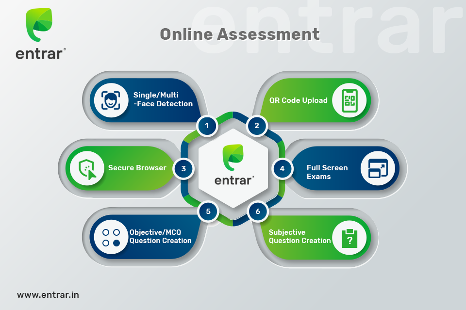 This Examination Software module makes teachers work easily in conducting an online examination which has never been an easy task. ENTRAR has the option to add or remove students, selective subject examinations, instant result declaration, and other features like fill/ view information about the students that are attending the examination.