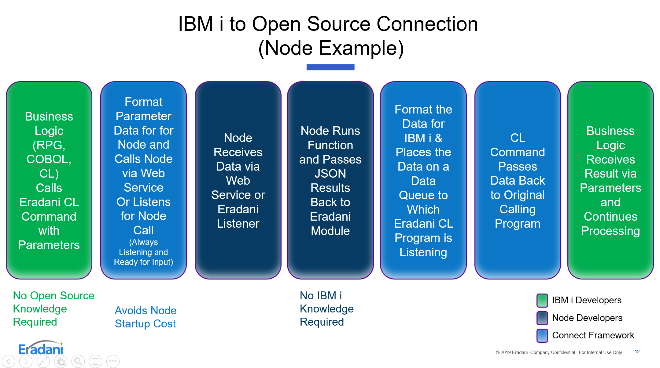 Berkeley, California May 6, 2020 (Issuewire.com) - Eradani (www.eradani.com) today introduced the newest addition to Eradani Connect, its easy to use framework for connecting IBM i resources with open source programs and services. Eradani Connect 3.1 adds an IBM i to open source connection that allows RPG programmers to call open source programs (web services, JavaScript, Python, etc.) just like they call another RPG program or CL command, eliminating the need for complex coding to translate between the two environments.