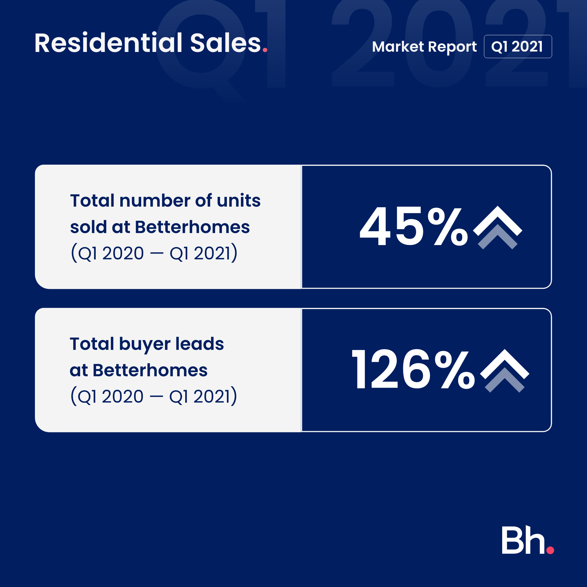 - The number of units leased at Betterhomes increased by 19% compared to Q1 2020.