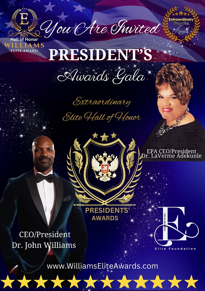 Extraordinary People Awards under laExpose’ Production, is a 501c3 organization specializing in helping entrepreneurs succeed in their ventures, including charity organizations. The company offers many products and services, seminars, and event organizing. The company’s mission is to provide a platform for entrepreneurs to connect, learn, and grow their businesses. To learn more about the fundraising awards event, please visit WilliamsEliteAwards.com