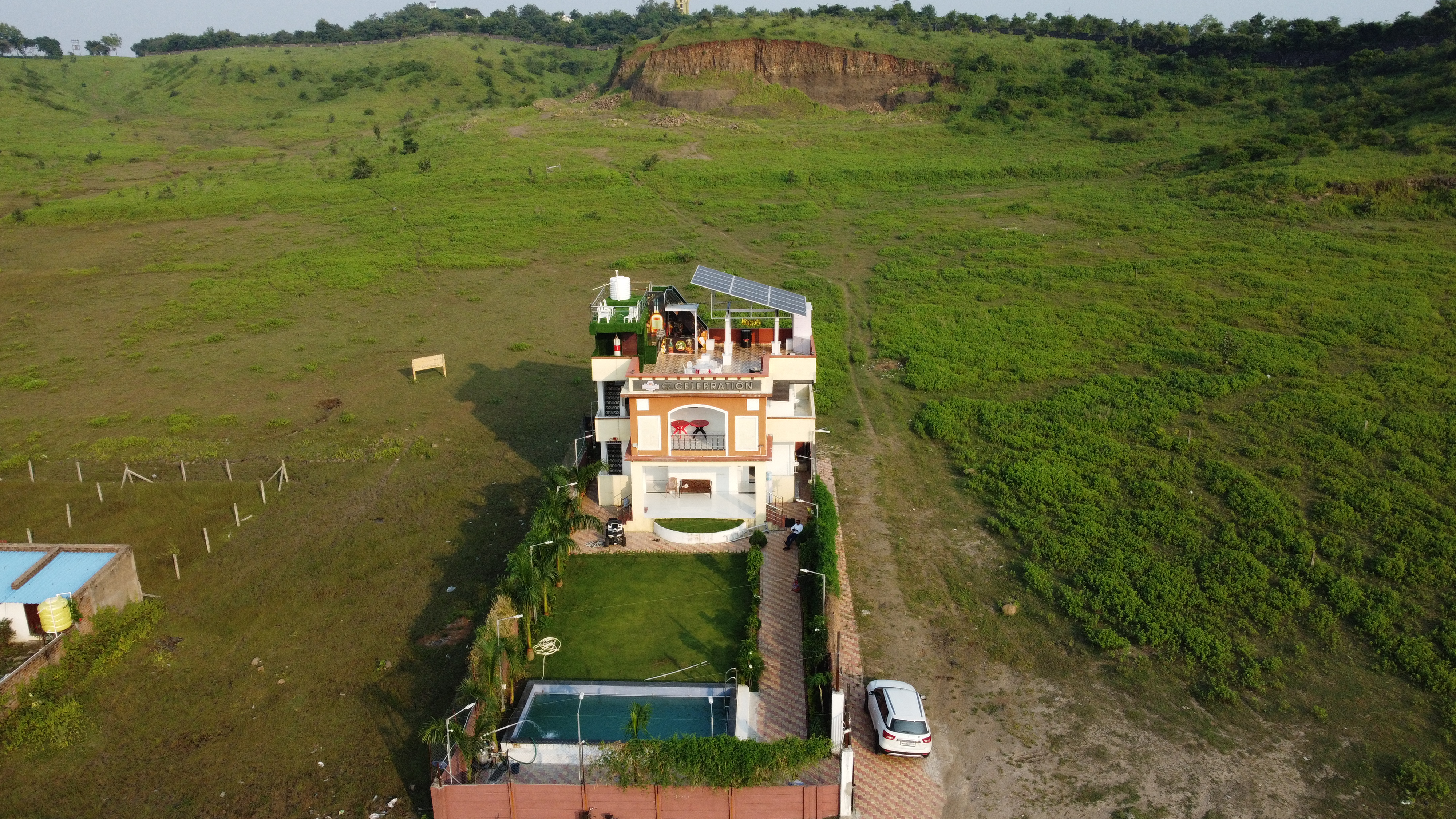 EZ Celebration's farmhouse in Nagpur is known for its excellent hospitality and service. is targeted at local people. It is a popular destination for friends and family, and is also perfect for group events. The farmhouse offers stunning views of the hilltops and is surrounded by silence in the evenings. The nicest farmhouse in Nagpur is EZ Celebration Hilltop Farmhouse, which offers convenient access to the city and a tranquil environment. You will have access to indoor and outdoor activities, a rooftop, a magnificent garden, a private parking space, and a private pool at this villa. This farmhouse provides all basic amenities for a comfortable stay, including an outdoor event area. The villa is just 13 kms away from the zero miles Nagpur.