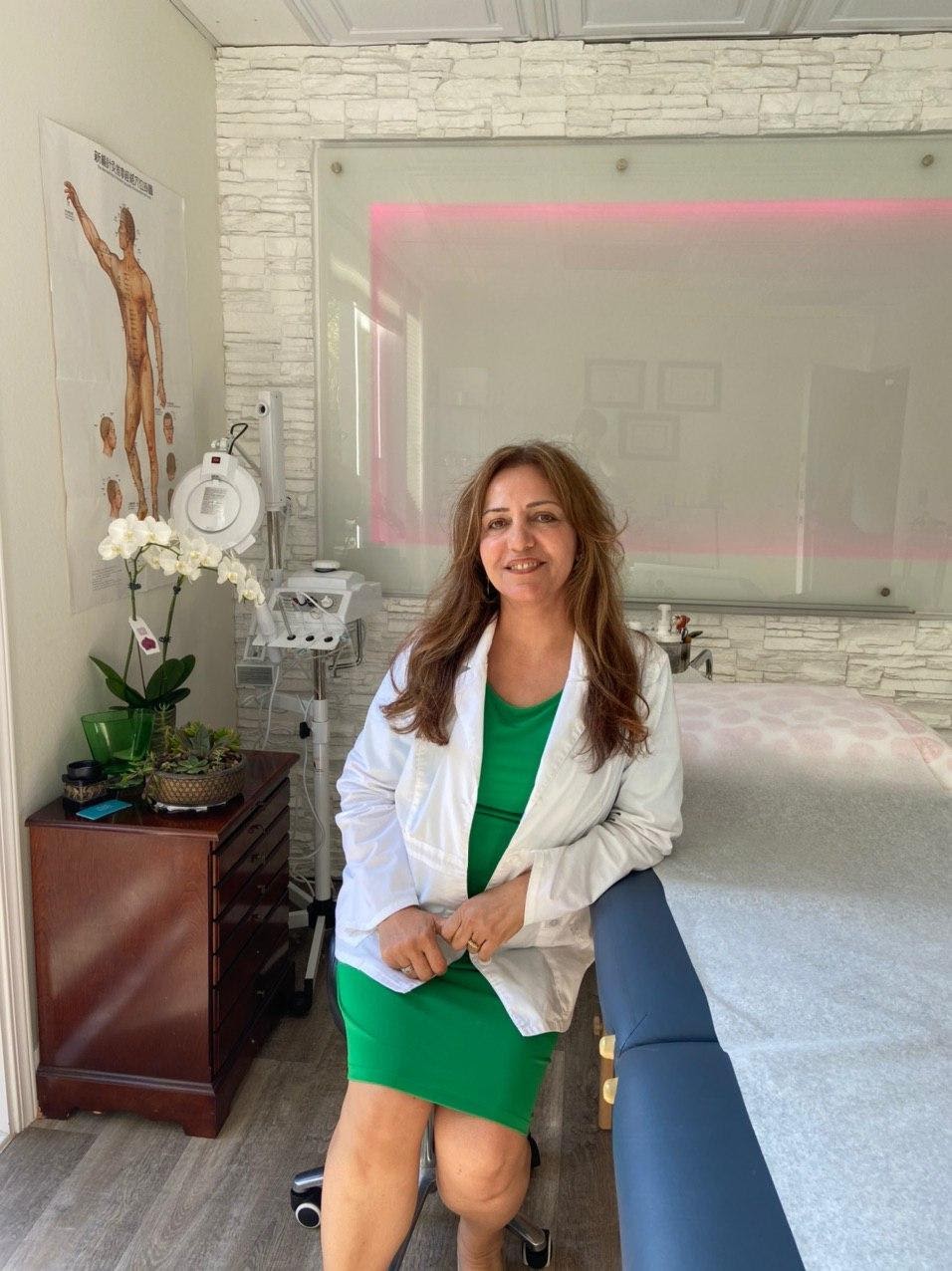 Through her findatopdoc profile, https://www.findatopdoc.com/doctor/2983315-Fatima-Manesh-Acupuncturist or through Acupuncture & Alternative Health Center, https://safa1822.wixsite.com/drmanesh/about