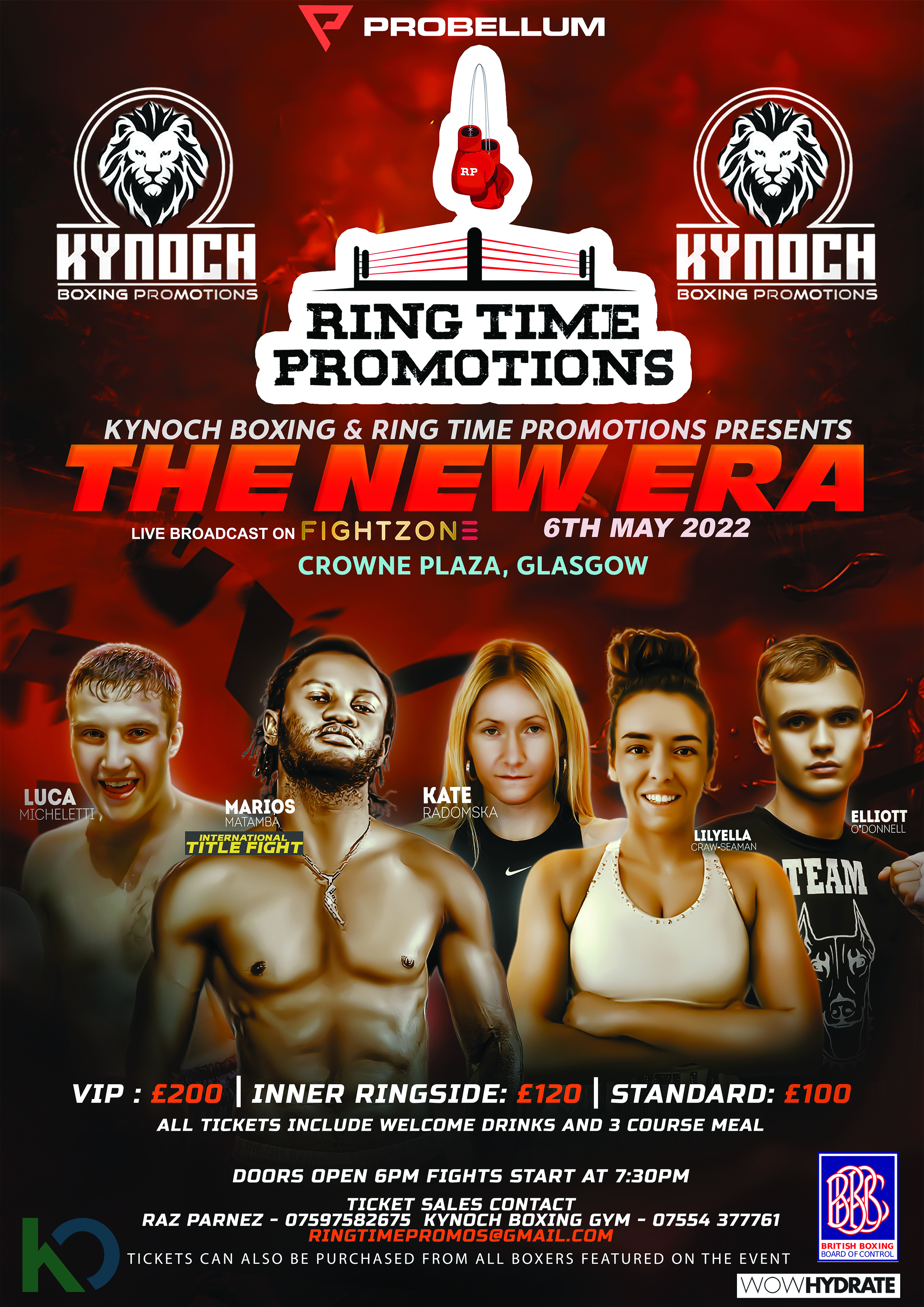 Raz said; "the things I have seen and went through, I want to make sure none of these things happen to my boxers. I want to run a well-oiled machine and look after my team and boxers, without the boxers there are no shows. I will be a success and will use all my efforts to bring massive events to Scotland in the future. I believe if other promoters engage with me, we can make this happen. I want a World Champion. if this does not happen then I haven't fulfilled my dream. I am here to stay and look forward to the road ahead. My first event is being held on 6th May at Glasgow's, Crowne Plaza, called The New Era, which will feature 5 contests on the night, one being an international title bout. Having support from friends, family, all the fight fans and local businesses is essential. This makes the event worthwhile for their entertainment and enjoyment. Any future boxers looking to compete, get in touch with the team."