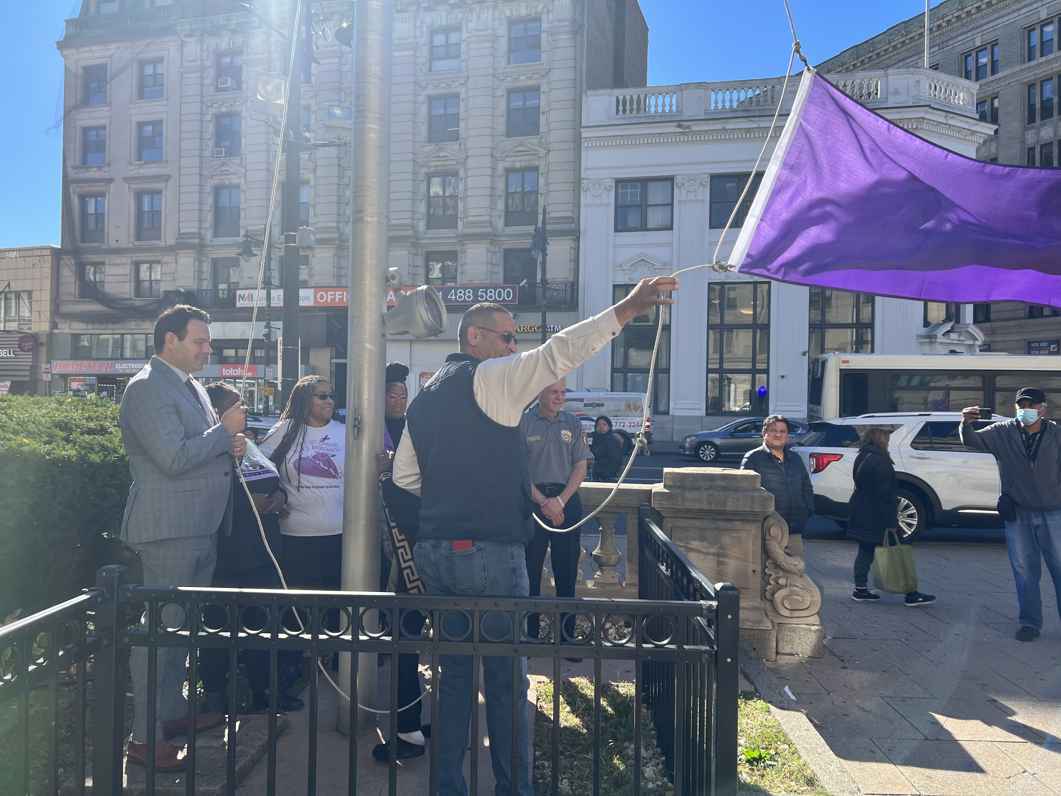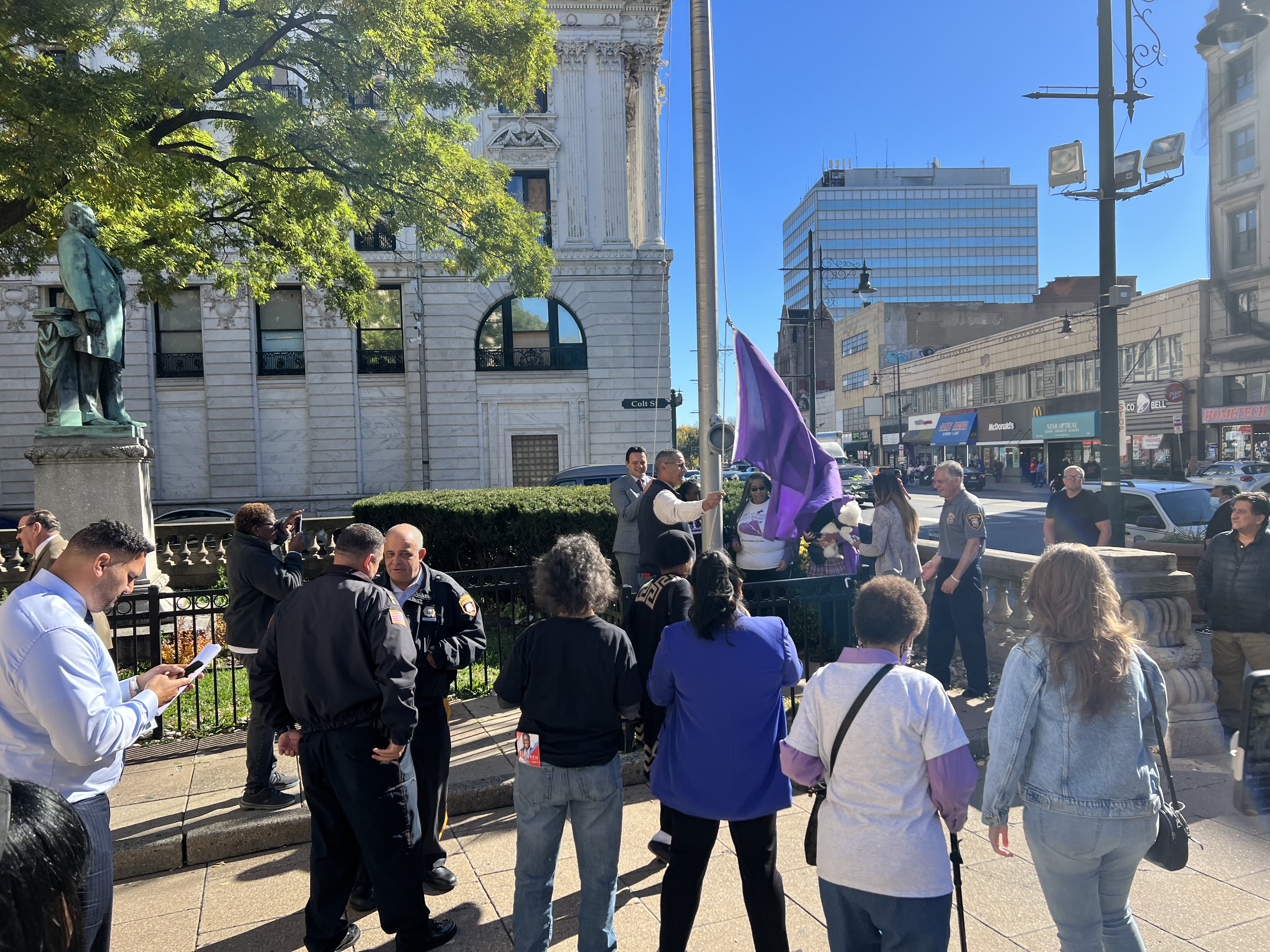 Also speaking at the occasion, CEO/Founder, of Fly Women’s Network, Melanie Holmes, said: “This is our fifth year of collaboration; we started as a candlelight vigil at the courthouse steps; it is remarkable that today would be our time to raise the flag of awareness. In this short period of time of us doing this flag raising, at least 15 people have called the hotline of New Jersey for domestic violence. In a great way, it is really important to note that every hour 15 people are calling in to get help; and that's why this is so dear to me to be able to have this type of opportunity for people to say, let's raise the flag. We are no longer going to be silent about suffering behind closed doors; the louder we are, the better it is.”