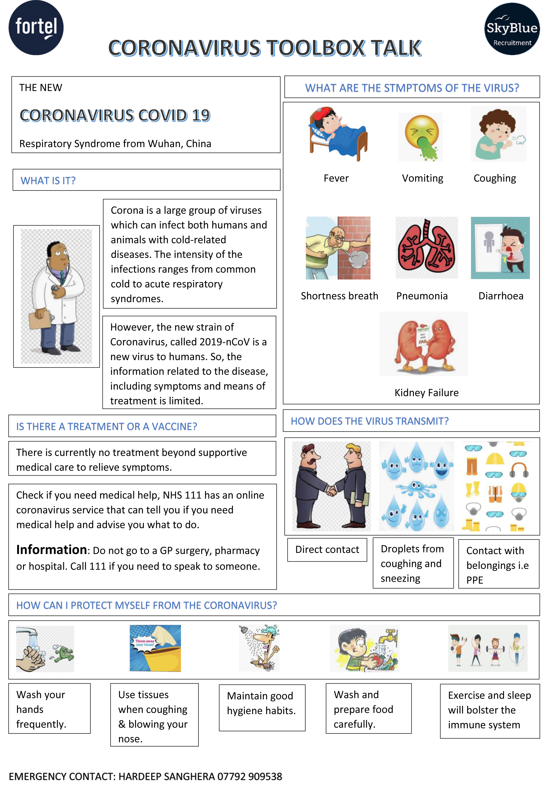 West Midlands, United Kingdom Mar 11, 2020 (Issuewire.com) - As the owner of Fortel, I would like to share basic information about coronavirus. We all know that it is a lethal virus that has become an epidemic for the whole world. This article is designed by keeping in mind Fortel security guards, Fortel labourers and Fortel Gateman, and other such workers who might not know much about this virus. For them to understand the serious nature of this problem, and the measures they should take to avoid getting are mentioned in detail below.