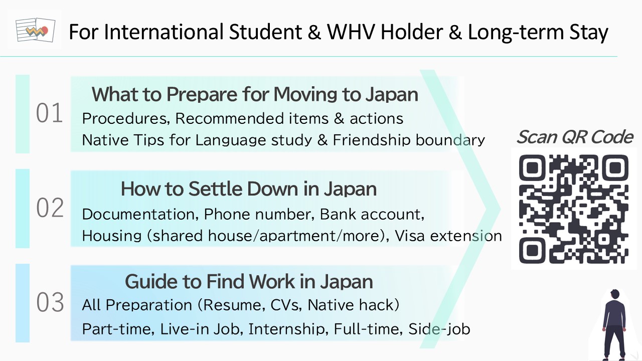 Japanese resume and CV creation, Interview dress code, Part-time and Live-in work opportunities, Native tips for Internship and Full-time, Business Japanese communication with seniors, more