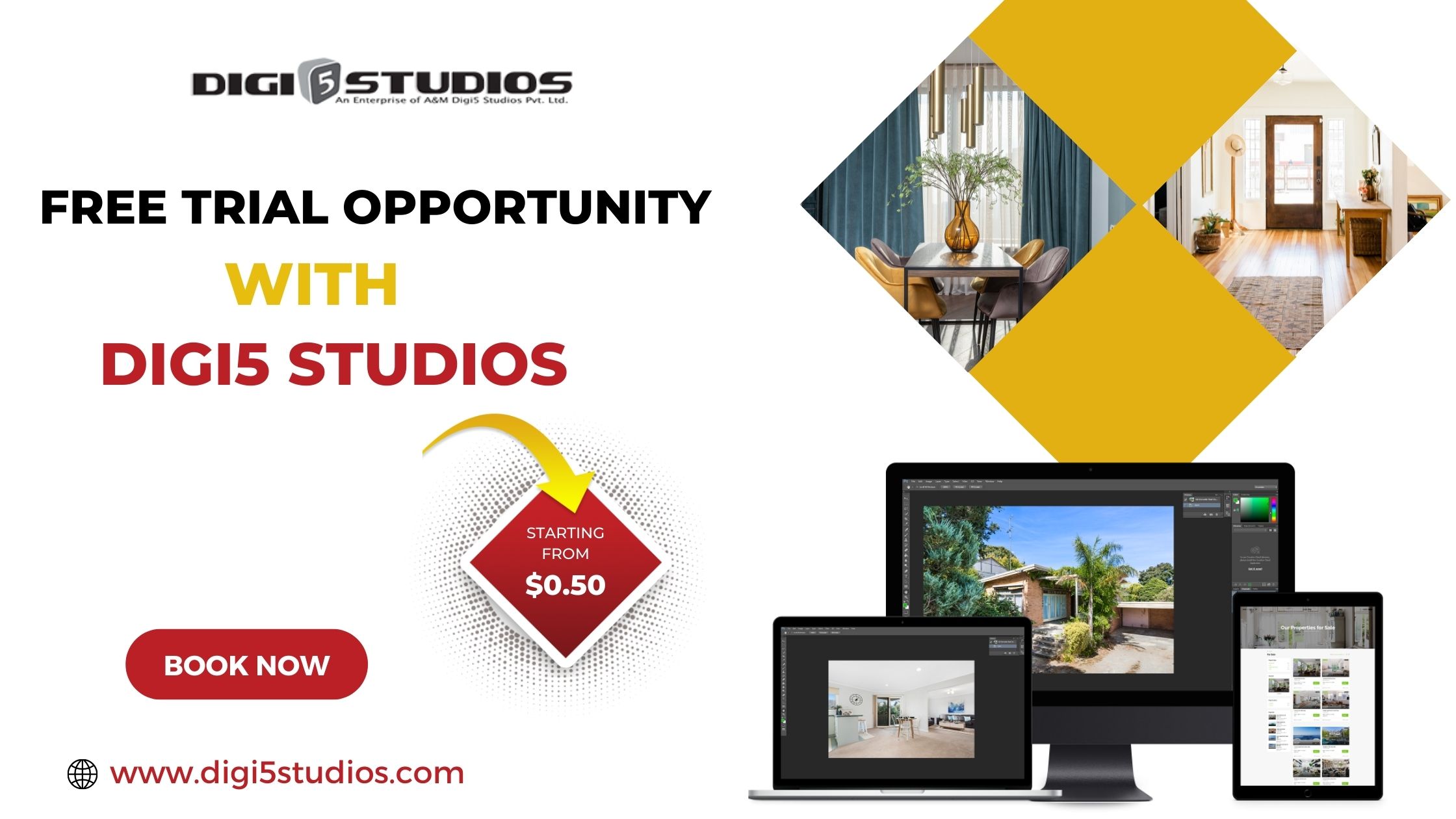 DIGI5 Studios is an image and video editing company that provides free trials for its clients. This is to give them a chance to see what it's like to work with us before they decide to hire us.