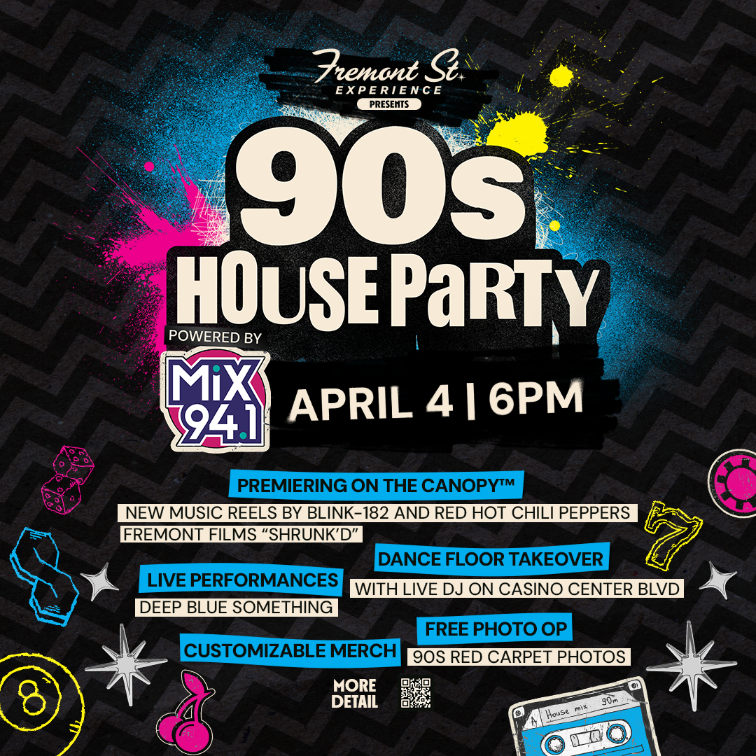 “The 90s House Party marks the beginning of an exciting new series of themed events at Fremont Street Experience,” said Cliff Atkinson, President and CEO of Fremont Street Experience. “By combining immersive entertainment, new canopy content and live music with interactive guest experiences, we’re creating unique celebrations that bring different eras and cultures to life in downtown Las Vegas.”