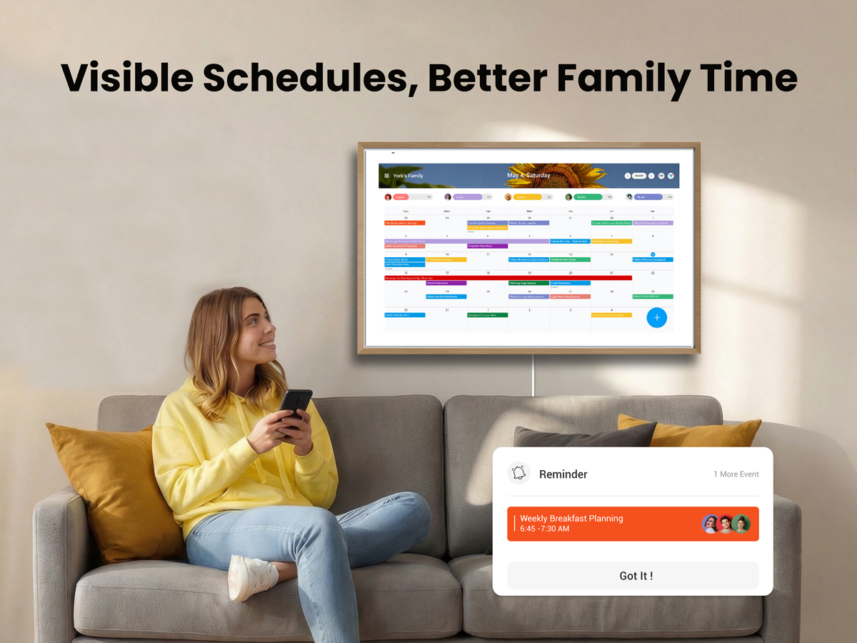 As digital calendars have become increasingly personal, many families are rethinking where and how schedules should be displayed. Rather than relying solely on phone-based apps, some households are turning to digital wall calendars, placing family schedules in shared spaces such as kitchens or living rooms.
