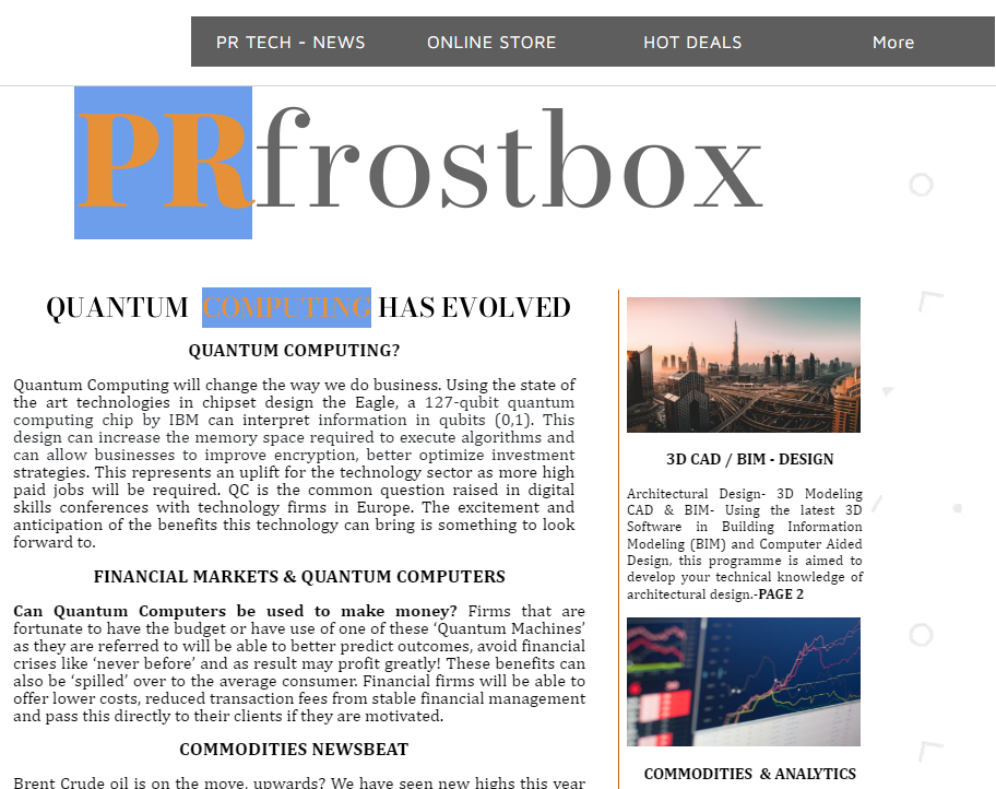 San Francisco, California Aug 9, 2022 (Issuewire.com) - Independently operated by technology and education focused consultancy PR Tech Global Ltd, registered in Great Portland Street, London. The tech-savvy team of journalists reports on exclusive technology, business news, and global commodities markets. The Frost Box Press provides readers with access to exclusive news, employer direct jobs, and free gifts from content partners with each edition. The Vibrant Tech News is available in 11 languages providing a more enjoyable experience for readers globally. Download our Free News & Jobs APP