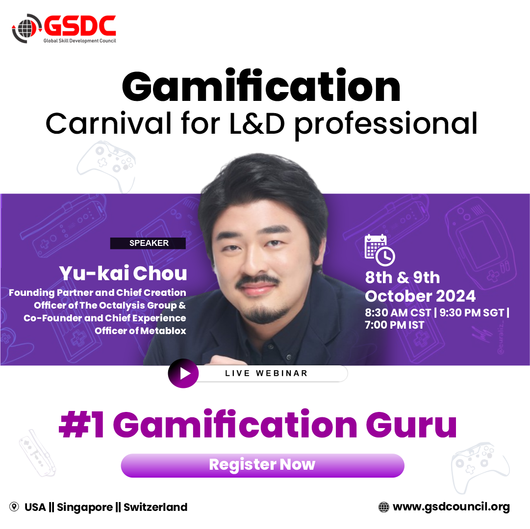 Westborough, Massachusetts Sep 20, 2024 (Issuewire.com) - The world of Learning and Development (L&D) is set to be revolutionized at the upcoming Gamification Carnival 2024, a two-day virtual extravaganza featuring world-renowned gamification expert Yu-kai Chou. The event, scheduled for October 8-9, 2024, aims to equip L&D professionals with cutting-edge gamification strategies to enhance learning experiences and drive organizational success.