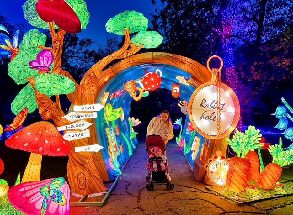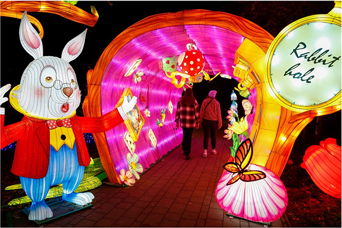 As guests walk through the outdoor exhibition, they will be mesmerized by a spectacular array of breathtaking lights that illuminate the space and create the captivating atmosphere that brings Wonderland to life. Every corner of the Crawford Barn property will come alive with characters from the beloved story, such as Alice, the Mad Hatter, the White Rabbit, and the Queen of Hearts, appearing in the form of illuminated lanterns.