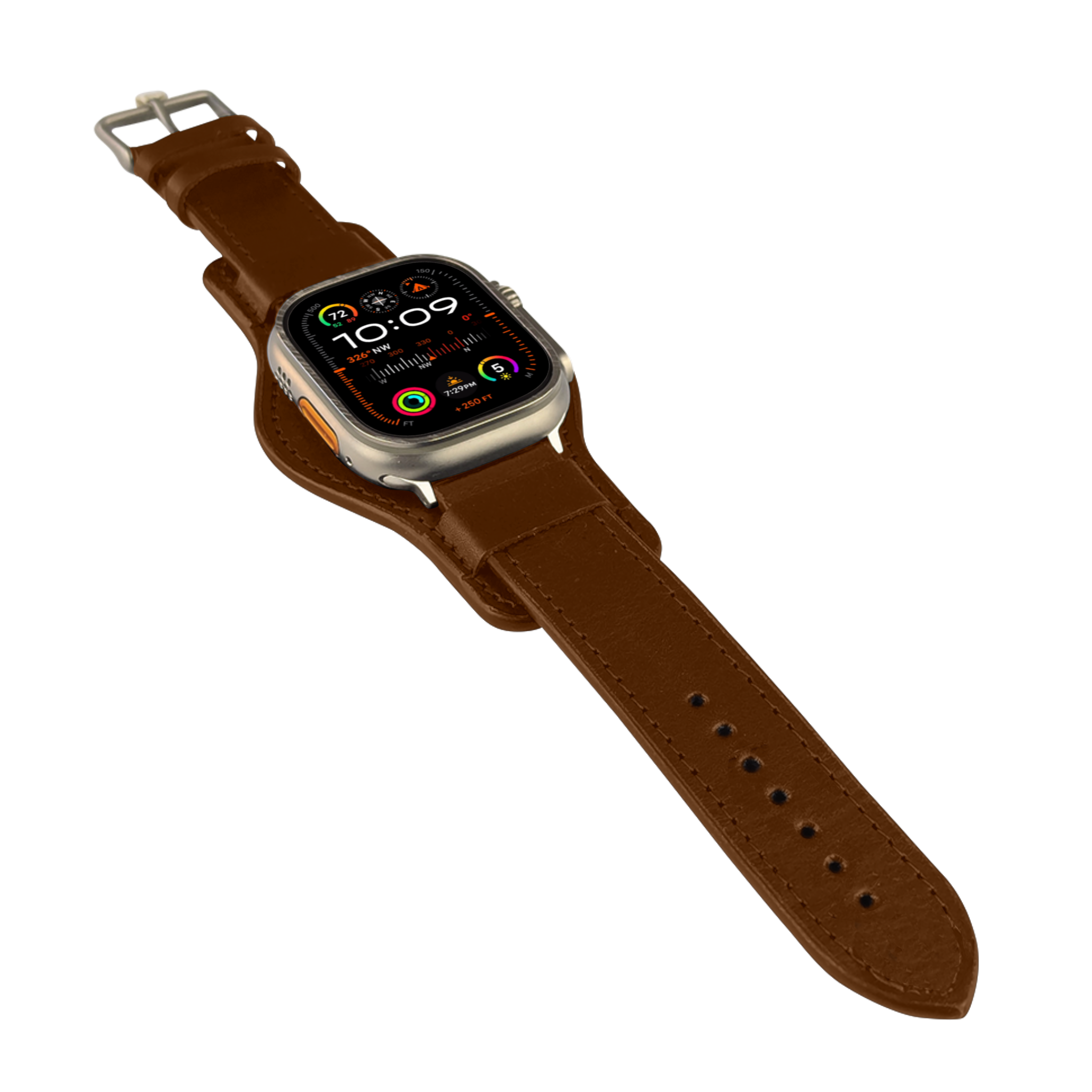 Inspired by the original Garstin “wristlet,” commissioned by British officers in the 1890s and registered with the Board of Trade in 1893, these straps reimagine a heritage design for the modern world. The iconic bund-style silhouette cradles the Apple Watch in a form that is both distinguished and practical.
