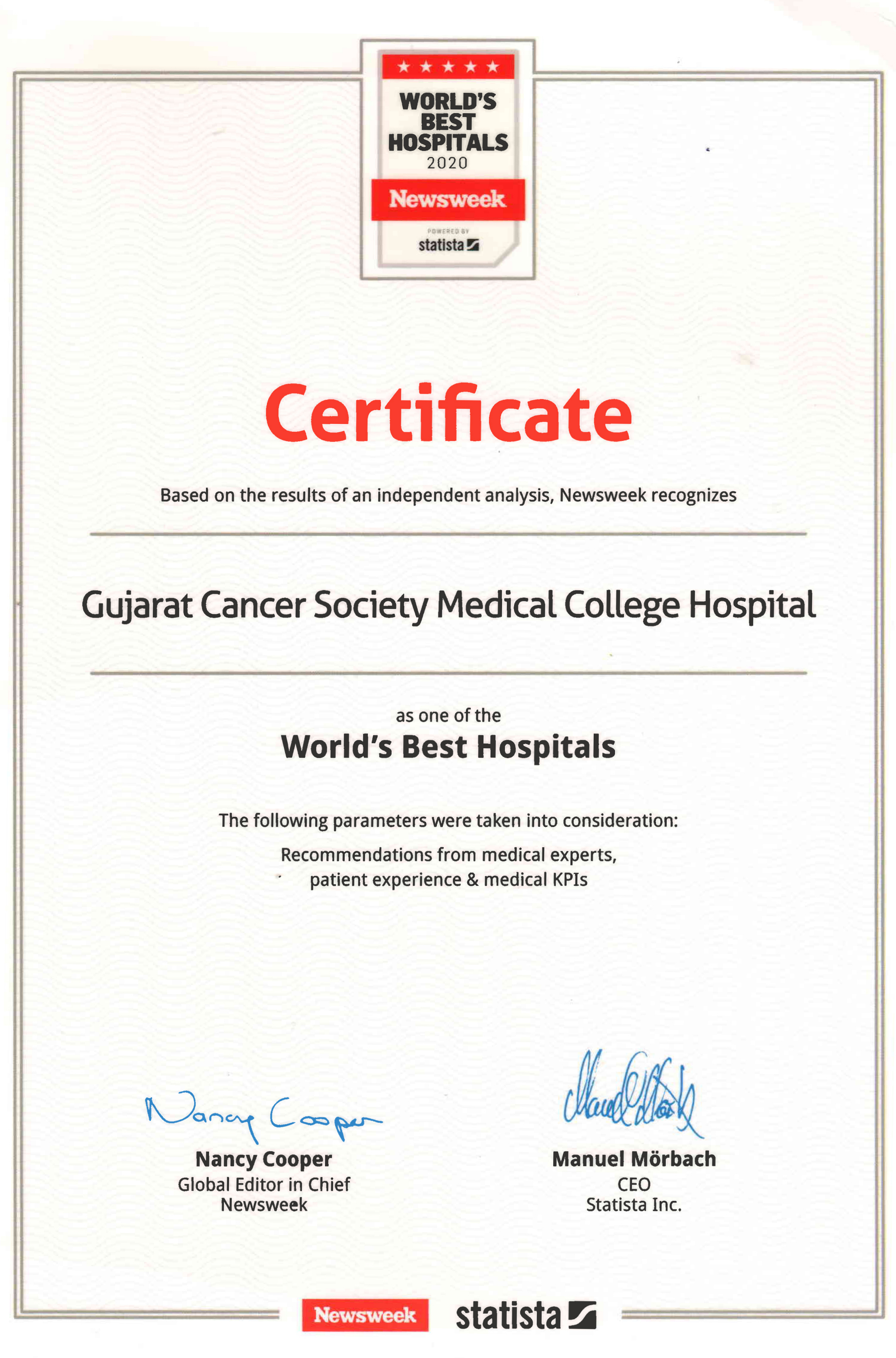 Ahmedabad, Gujarat Mar 17, 2020 (Issuewire.com) - GCS Medical College, Hospital & Research Centre is ranked amongst the “World's Best Hospitals 2020” by Newsweek featuring in the global list of “Best Hospitals - Top Specialized”. GCS Hospital is the only Hospital from Gujarat to be recognized in this category. Newsweek partnered with Statista Inc., a global market research and consumer data company, to develop a groundbreaking ranking of the world's best hospitals from 21 countries. The rankings are based on recommendations from medical professionals, results from patient surveys and key medical performance indicators. This endorsement honors GCSMCH on a global scale for its ongoing focus on delivering the highest quality of patient care.