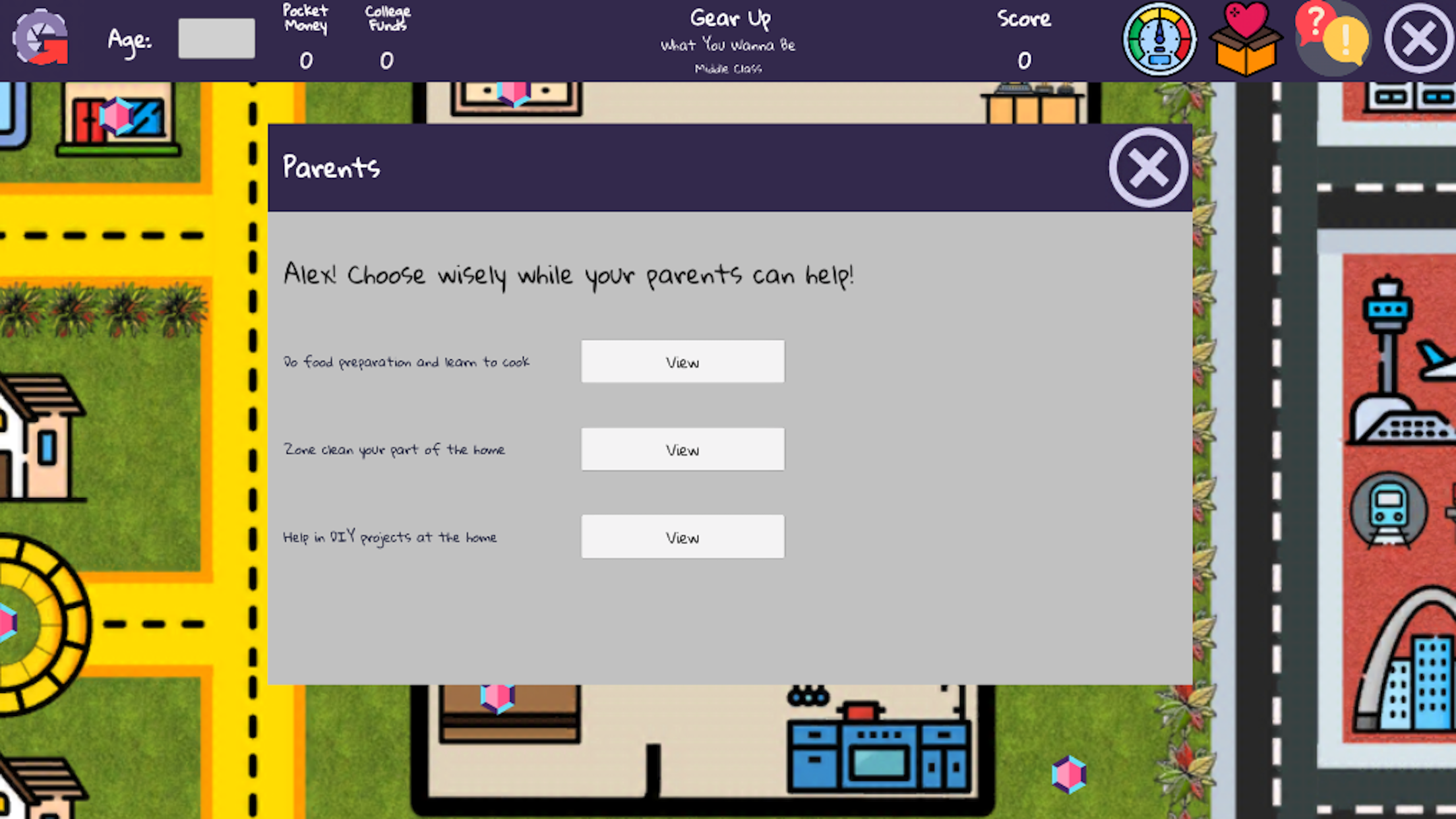 For many teens, their parents provide support, but few others have to fight their way to adulthood. Players can choose the levels, i.e., Wealthy, Middle Class, Low Income, Lone Trooper depending upon their social situation. Playing a game in different social setup develops an appreciation for underprivileged peers and prepares students for the worse. Also, life is full of surprises, and players have to wade through wrinkles life throws at them to be a true survivor.