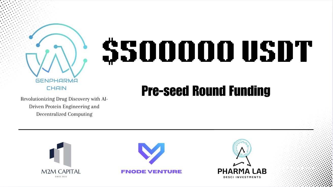 Ramey, United States Mar 12, 2025 (Issuewire.com) - GenPharmaChain, a pioneering blockchain-based AI pharmaceutical research platform, has successfully secured $500,000 in its pre-seed funding round. The investment was led by M2M Capital (@M2MCapital), FNODE Venture (@FNodeVenture), Pharma Lab (@Pharmalab700), and Avatia Pharmaceutical Company, with strategic support from Google, AWS and several angel investors from top-tier Web3 exchanges and VC