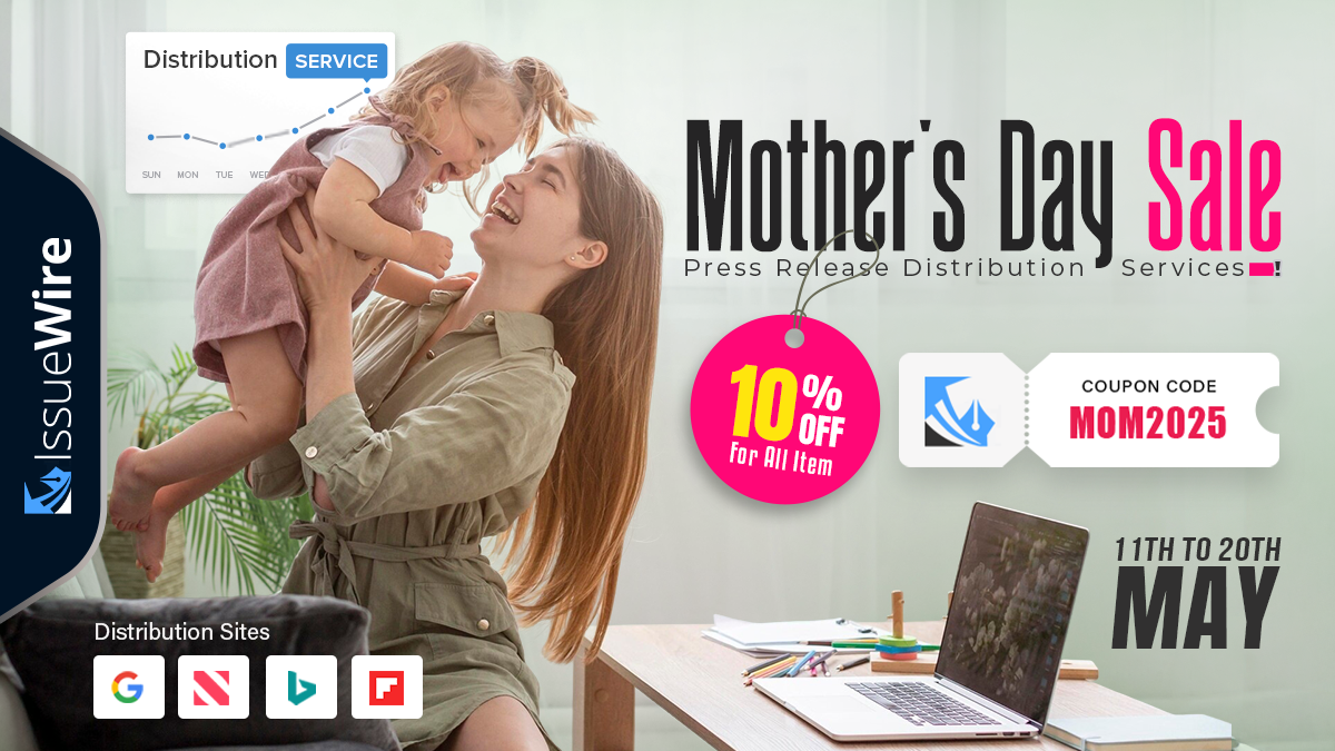 New York City, New York May 12, 2025 (Issuewire.com) - Mother’s Day is celebrated all around the world as an appreciation to the relentless mothers, and IssueWire is taking the opportunity to empower businesses and brands around the world on this occasion. The company has come up with a unique Mother's Day Sale which is offering a 10% discount on Press release distribution services. The sale is starting on May 11 and will be active till May 20. It offers a beneficial opportunity for the brands owners to create buzz in the niche markets on the occasion of Mother’s Day and paves the path for greater sales. Users can easily take advantage of this opportunity by adding the Coupon Code - MOM2025, which helps to secure the discount on the purchased package.