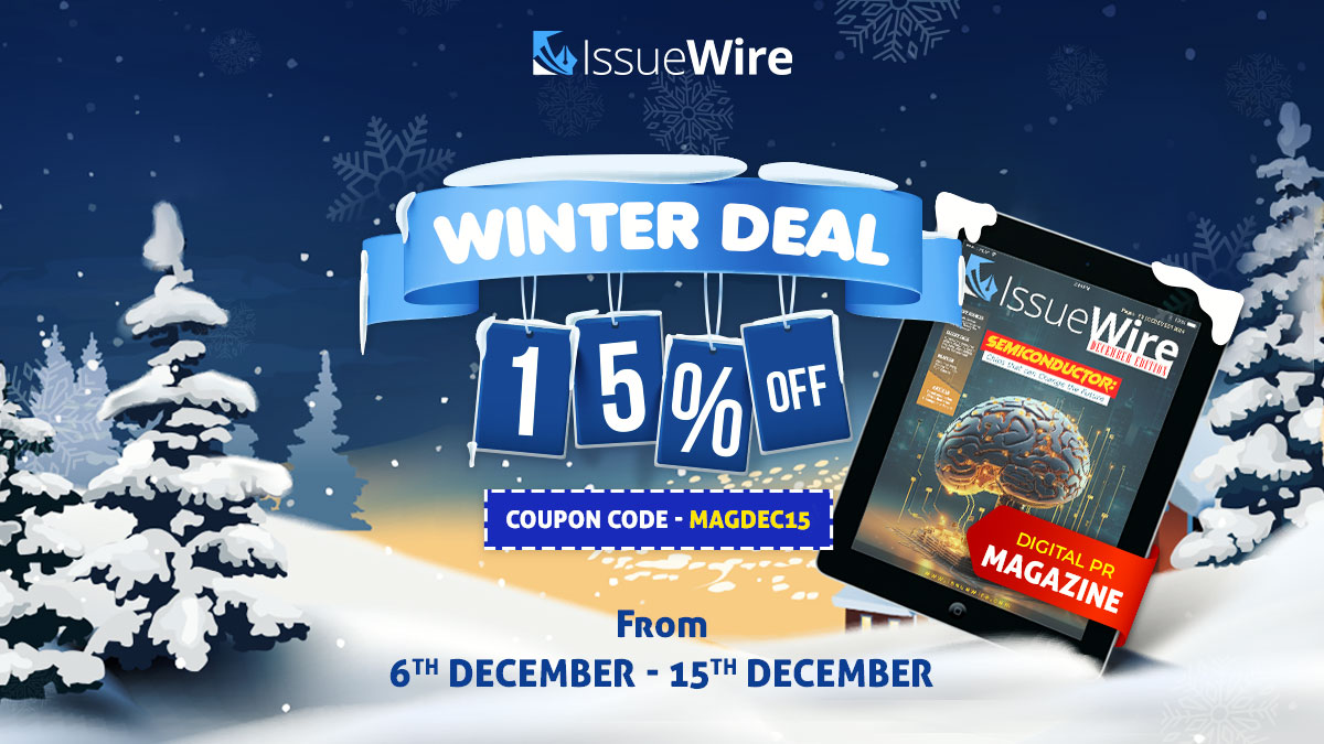 IssueWire magazine has monthly editions where the topics cover not just the current business ongoings but also the writers' sure never forget to include insights into the market and its trends. The real-time data offered on different industry topics helps readers to understand everything that is going on in the business world in detail. Now with this upcoming sale, marketers, business owners, and entrepreneurs have the unique chance to share their struggles and success stories, at a discounted rate. Mark the start of this holiday season with the biggest Winter Sale from IssueWire where the publication is offering a flat 15% discount on its magazine placement, from 6th to 15th December. Use the coupon code MAGDEC15 to avail this offer and make an impression on the minds of business lovers!