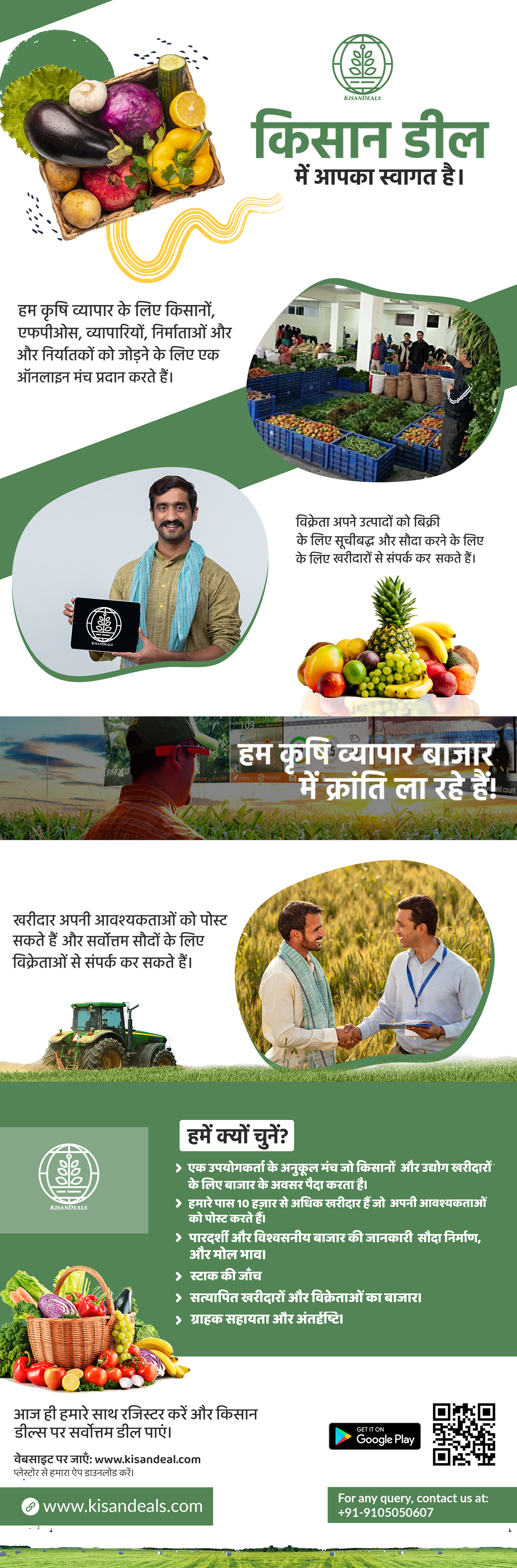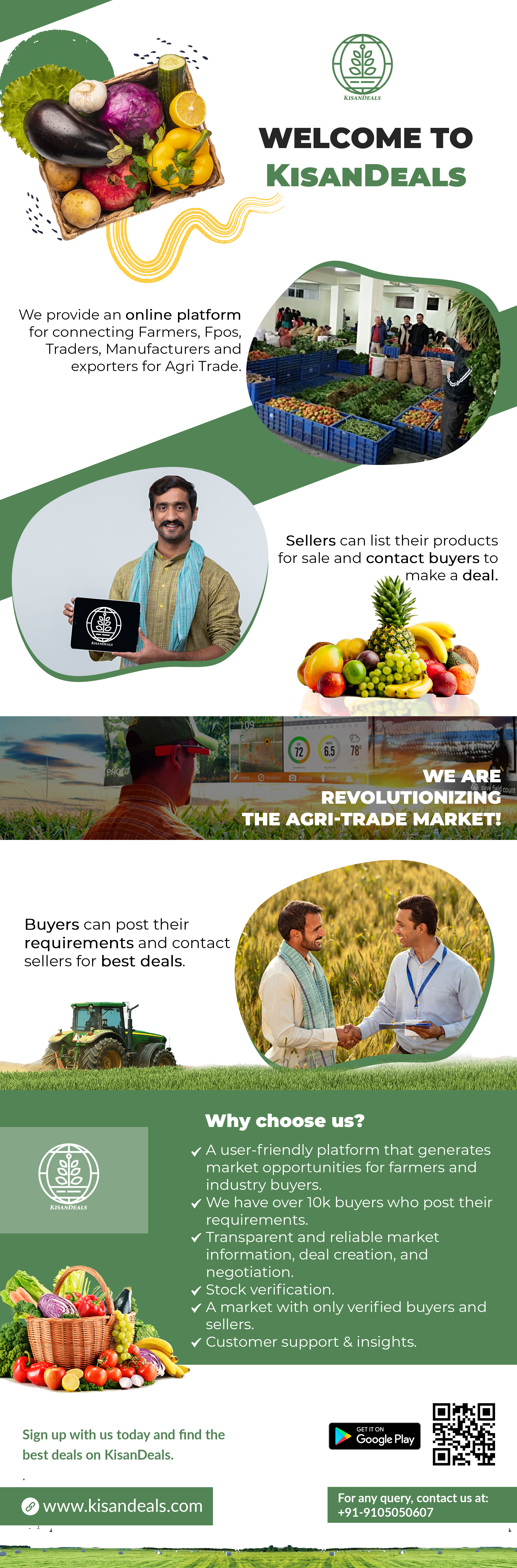 KisanDeals is an AgTech Startup started in 2021 to make Agri trade simpler by connecting Farmers, Exporters, FPOs, and Traders across India.